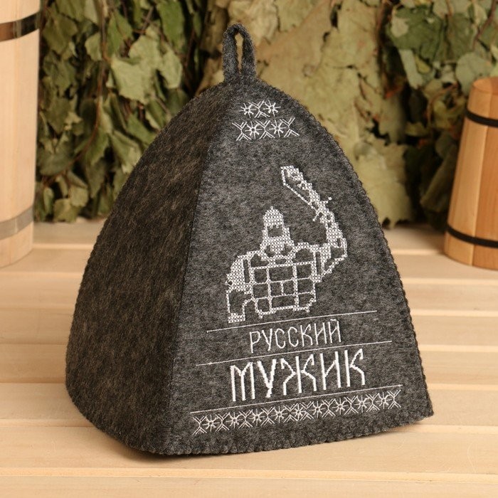 Набор для бани 4 предмета «Русский мужик» шапка, коврик, рукавица, портфель