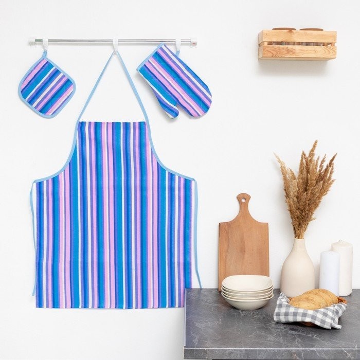 Кухонный набор Мари Санна Сирень+орнамент (прихватка+рукавица+фартук), рогожка
