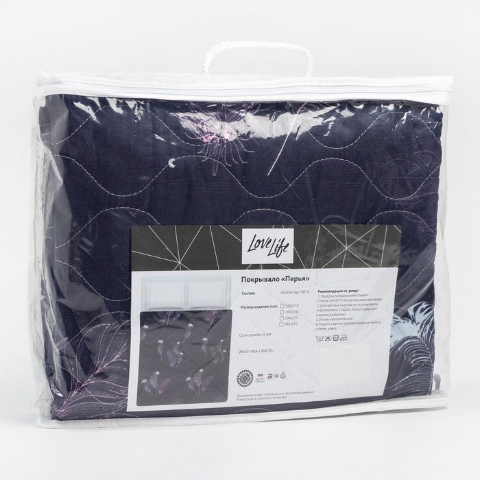 Покрывало LoveLife 2 сп «Перья» 180*210±5 см, новосатин,80 г/м2