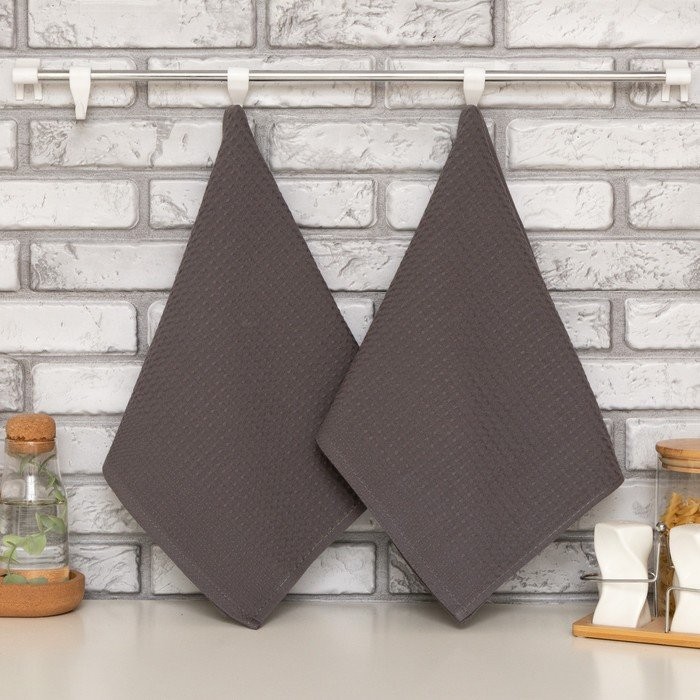 Набор кухонных полотенец Доляна, цвет тёмно-серый, 35х60см-2шт, 100% хл, вафля, 220 гр/м2