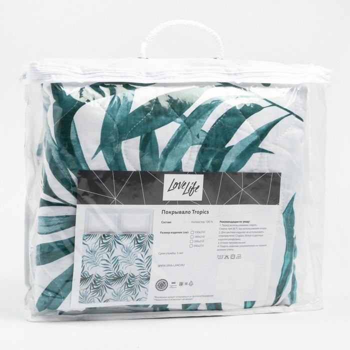 Покрывало LoveLife 2 сп Tropics 180*210±5 см, новосатин,80 г/м2