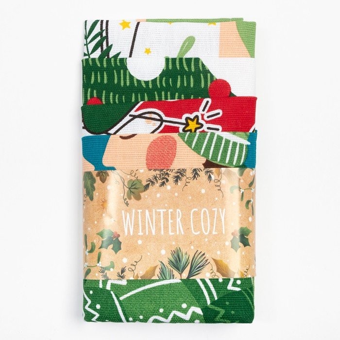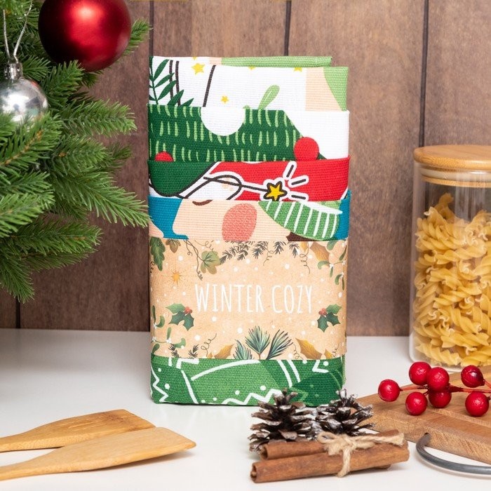 Набор кухонных полотенец Доляна «Время теплых объятий», 35×60 см-4шт., 100% хлопок, 160 г/м2