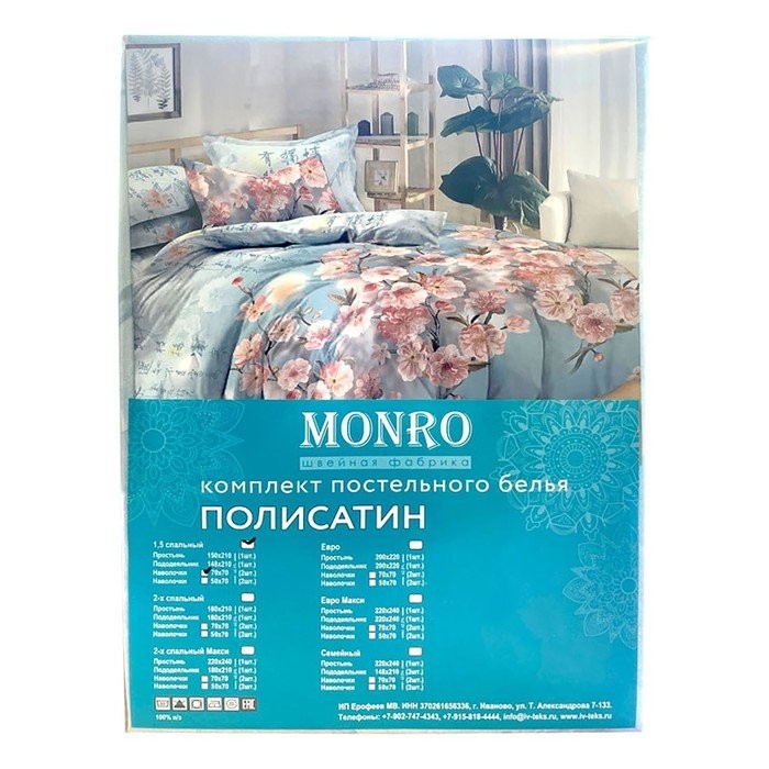 Постельное бельё Monro 2сп, 180×210, 180×210, 70х70см 2шт полисатин 80г/м, пэ100%