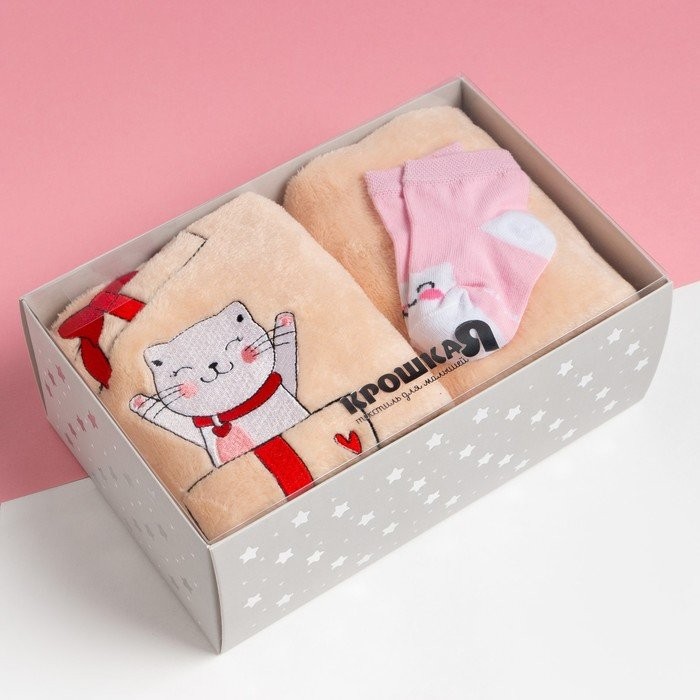 Подарочный набор Крошка Я «Кошечка», плед 90х100см, носки 10−12 см