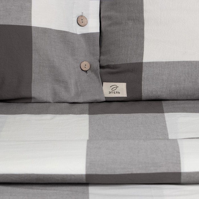 Постельное бельё Этель 2 сп «Серая клетка» 180×210 см, 220×240 см, 50×70−2шт,100% жатый хлопок,140гр/м2
