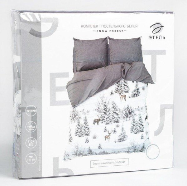 Постельное бельё «Этель» Евро Snow forest 200×215 см, 220×240 см, 70×70 см — 2 шт, поплин