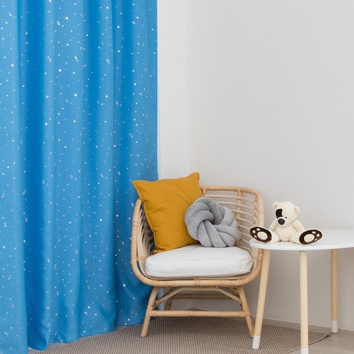 Портьера Этель «Звезды» без держателя, цвет голубой, 110×260 см, блэкаут, 100% полиэстер