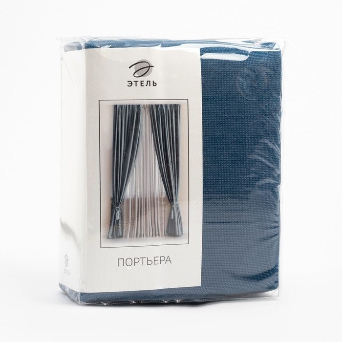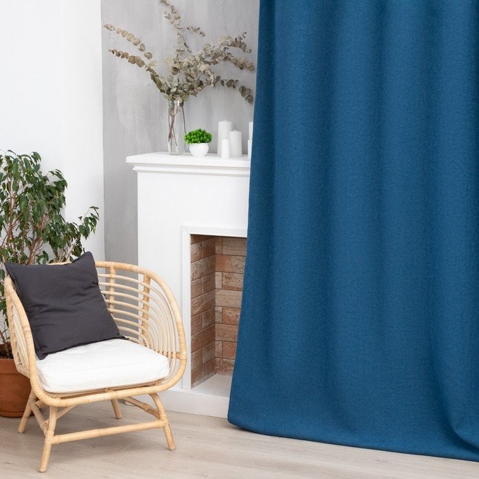 Штора портьерная Этель «Структурная», цвет синий, на шторной ленте, 130×300 см, 100% п/э