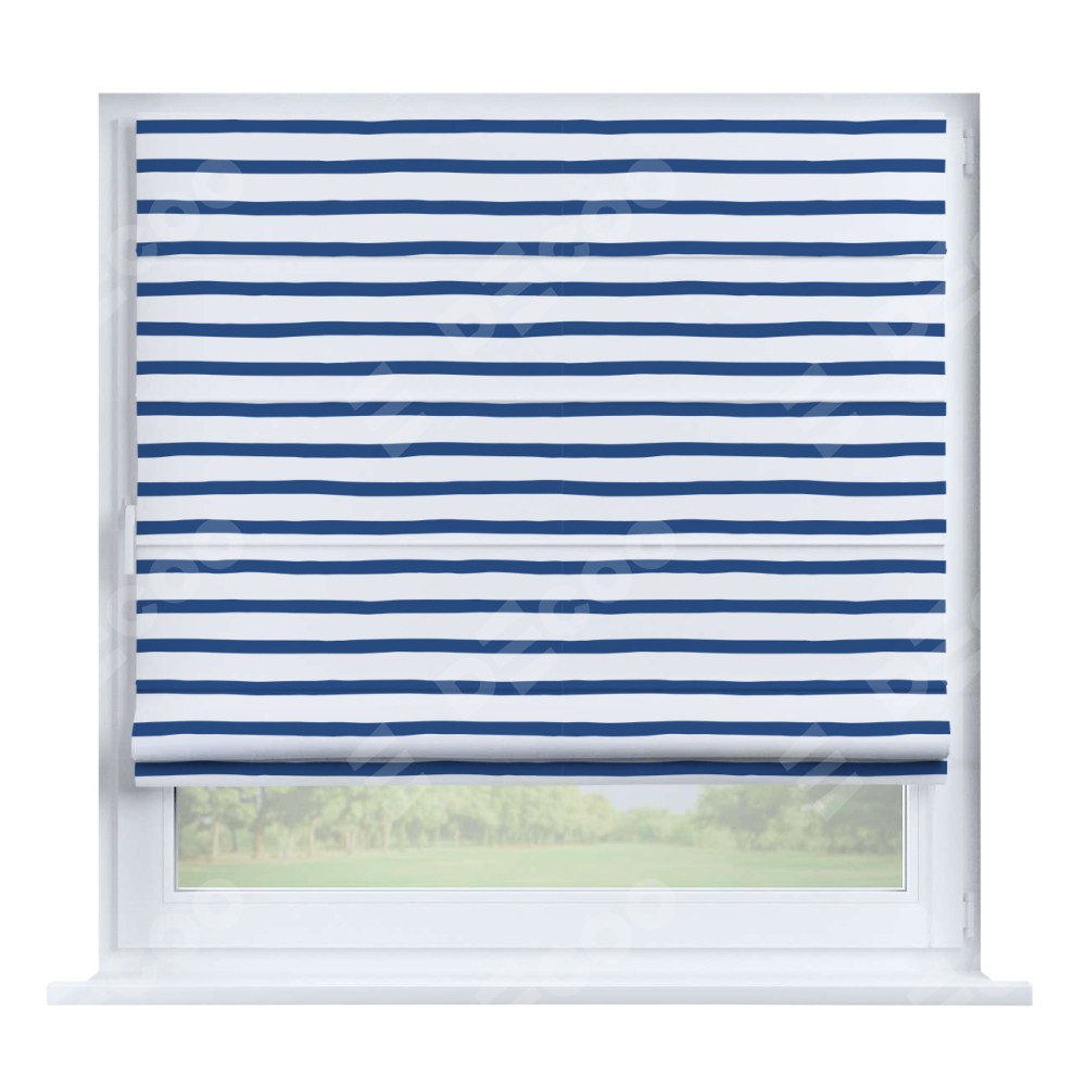 Римская штора производителя «Cortin», устанавливается на створку окна, пошита из ткани блэкаут с нанесением сублимационной печати «Морская полоска». Штора шьётся по индивидуальным размерам, для данного типа римской шторы возможная ширина от 35 до 150 см., высота до 250 см.