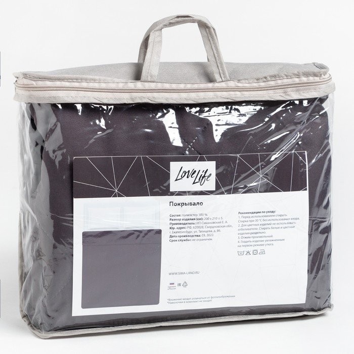 Покрывало LoveLife Евро 200×210±5 см, цвет темно-серый, микрофайбер, 100% п/э
