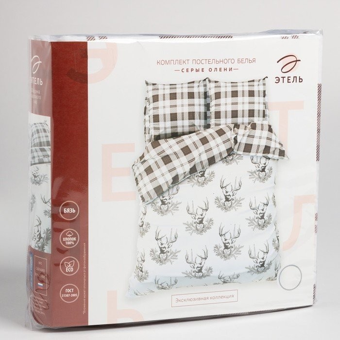 Постельное бельё Этель 2 сп «Серые олени» 175×215 см, 200×220 см, 70×70 см — 2 шт