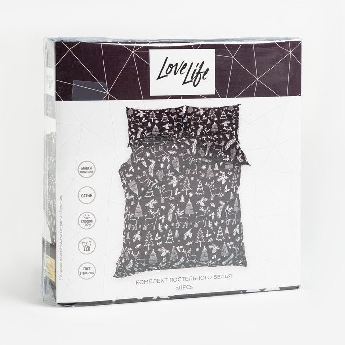 Постельное бельё LoveLife Евро «Лес» 200×217 см, 225×240 см, 50×70 см-2шт, 100%хлопок, сатин