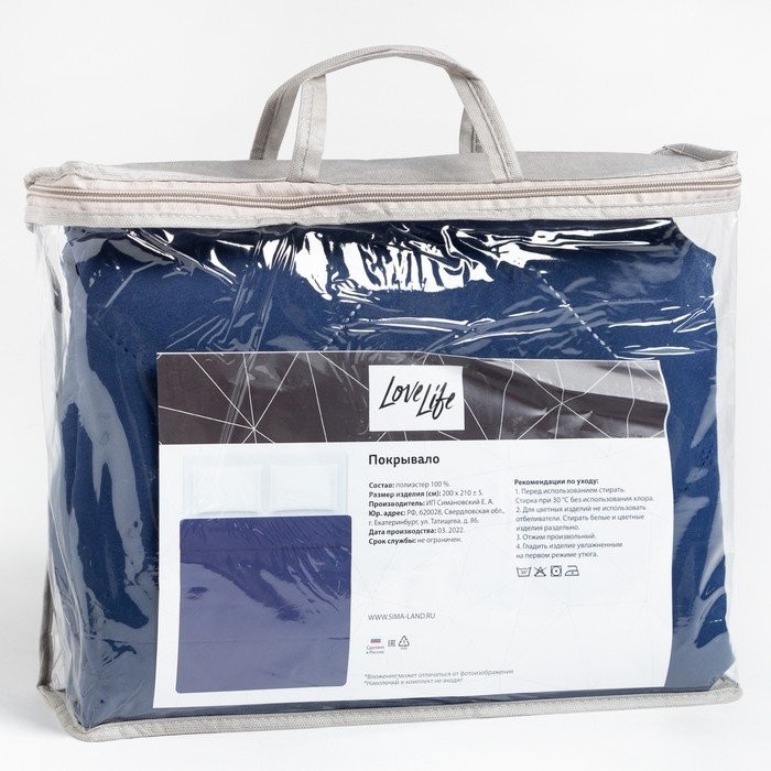 Покрывало LoveLife Евро 200×210±5 см, цвет синий, микрофайбер, 100% п/э