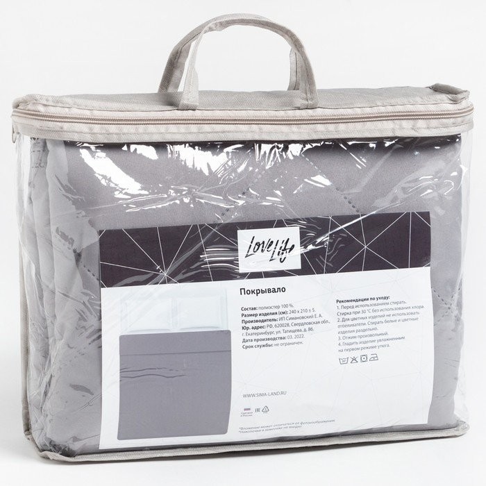 Покрывало LoveLife 2 сп 180×210±5 см, цвет серый, микрофайбер, 100% п/э