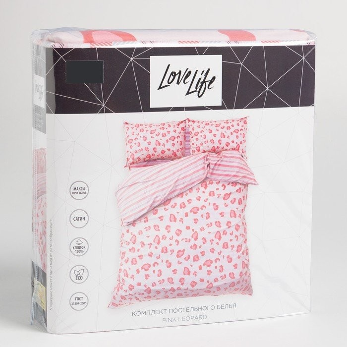 Постельное бельё LoveLife евро Pink leopard 200×217 см, 225×240 см, 50х70см-2шт, 100%хлопок, сатин, 125г/м²