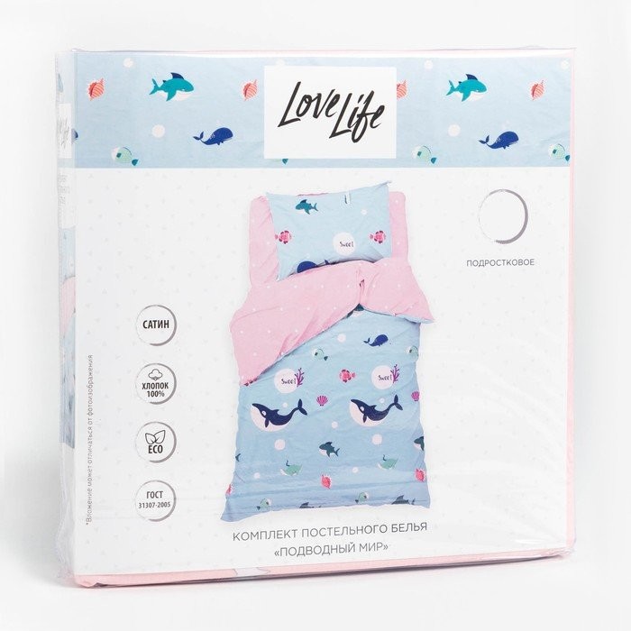 Постельно бельё 1.5сп LoveLife «Подводный мир» 143×215 см, 150×214 см, 50×70 см-1 шт