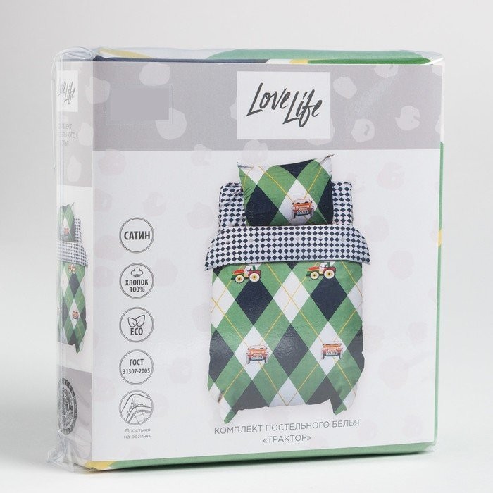 Постельное бельё 1.5сп LoveLife «Трактор» 143×215 см, 150×225 см, 70×70 см-1 шт, 125г/м2 сатин