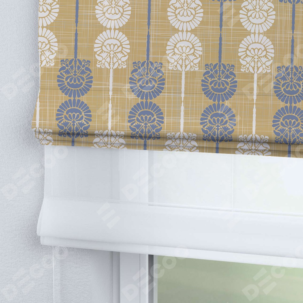 Римская штора день-ночь производителя «Cortin», используется для проёма, пошита из двух полотен, с лицевой блэкаут с нанесением сублимационной печати «Венок из ромашки», вторая ткань тюль (по стандарту комплектуется тюль белого цвета артикул V-01). Имеет универсальный механизм и подходит для монтажа: на потолок, на стену и в нишу.