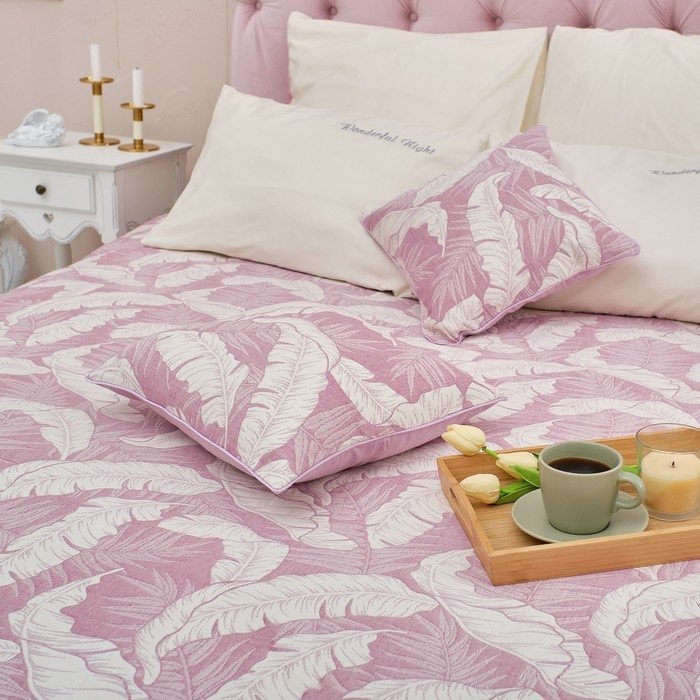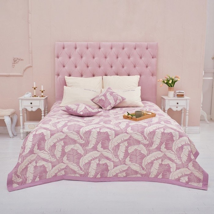 Покрывало хлопковое Этель «Перья» 150×240 см, цвет фиолетовый, 100% хлопок, 300гр/м2