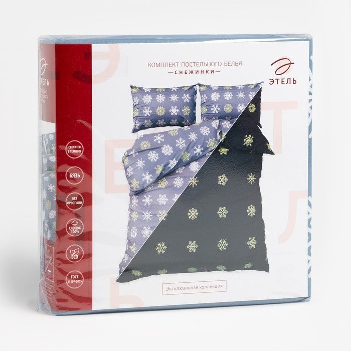 Комплект: пододеяльник и 2 наволочки «Снежинки» 175×215 см, 50×70 см — 2 шт, 100% хлопок