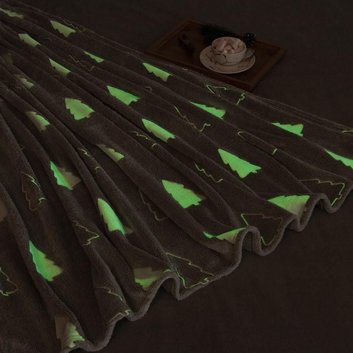 Плед светящийся в темноте Этель «Елочки» 180*200 см,100% п/э, корал-флис 220 гр/м2