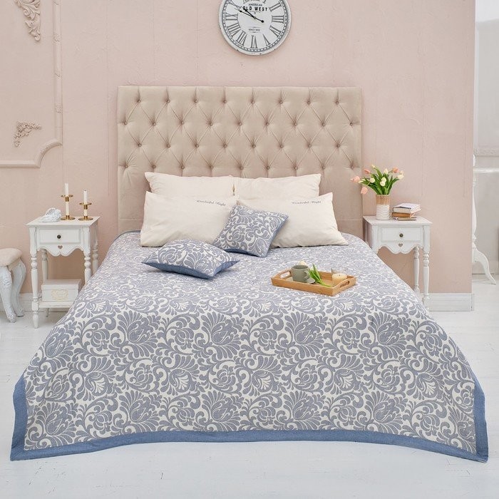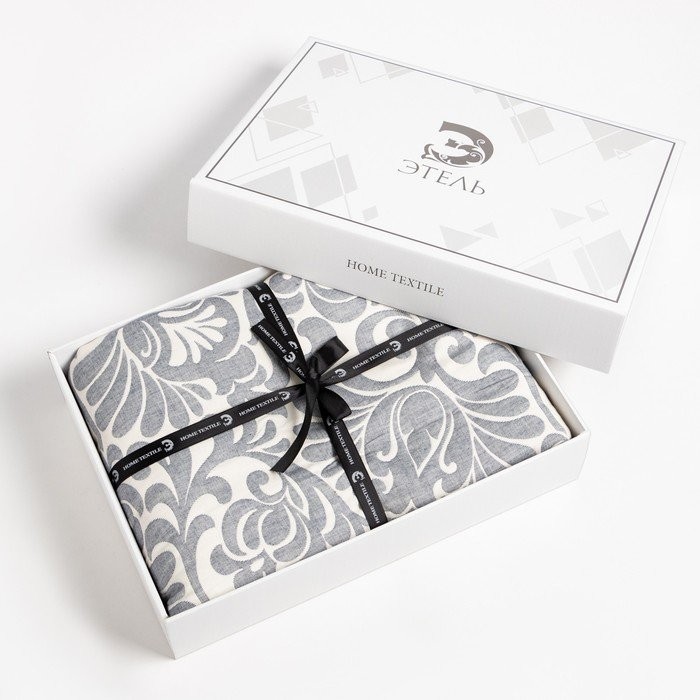 Покрывало хлопковое Этель «Узоры» 220×240 см, цвет серый, 100% хлопок, 300гр/м2