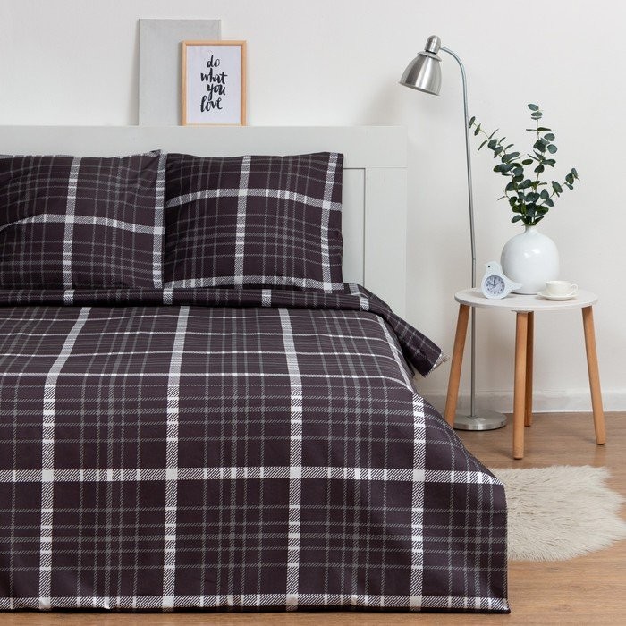 Постельное белье 2-х спальное «Клетка» 175×215, 200×215, 70×70−2 шт, сатин