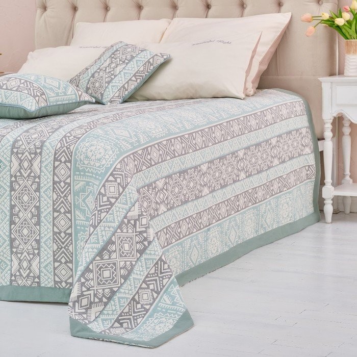 Покрывало хлопковое Этель «Инди» 150×240 см, цвет серо-зеленый,100% хлопок, 300гр/м2