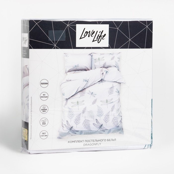 Постельное бельё Евро LoveLife «Стрекоза» пододеяльник 200×217 см+наволочка 50×70 см-2шт, поплин, 125 г/м