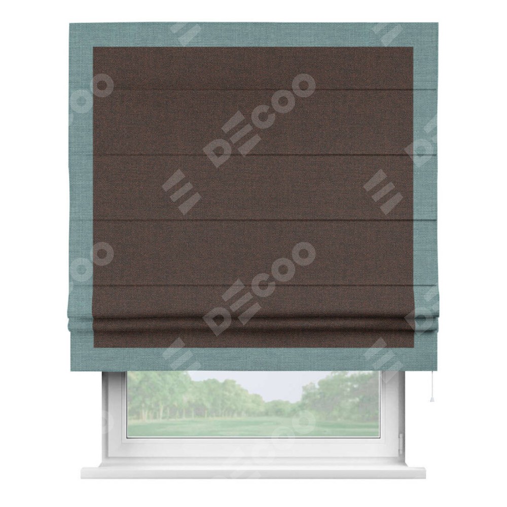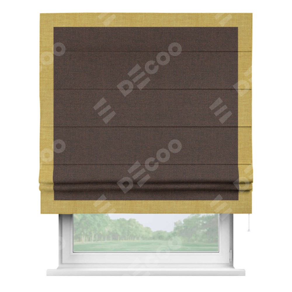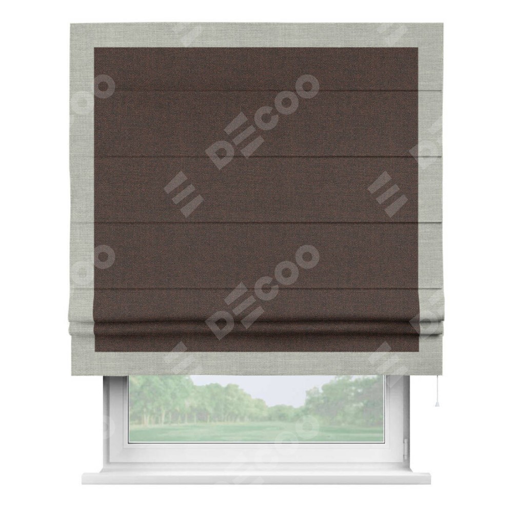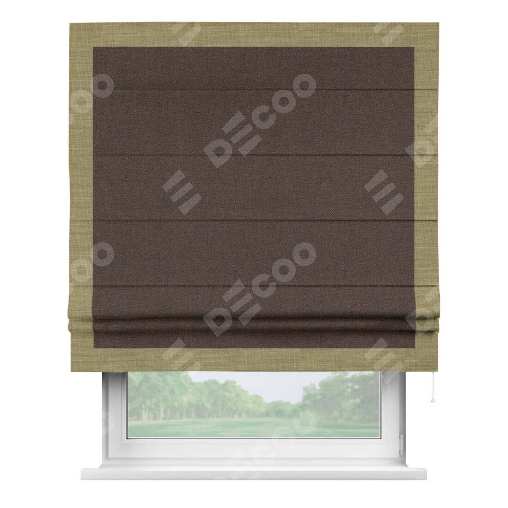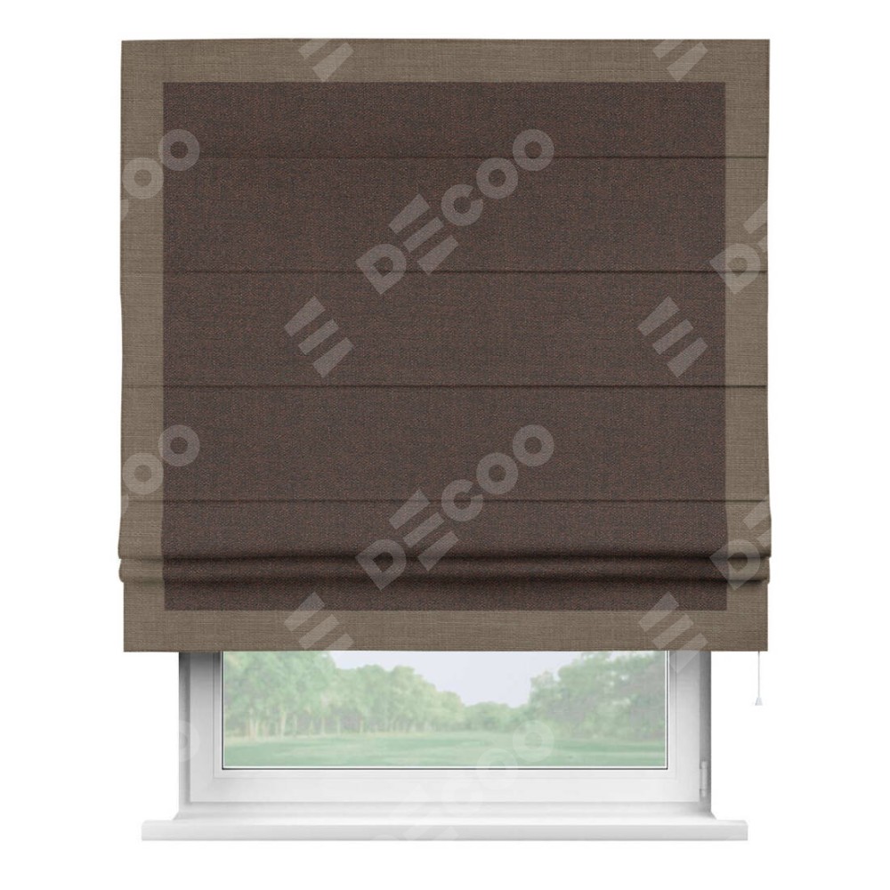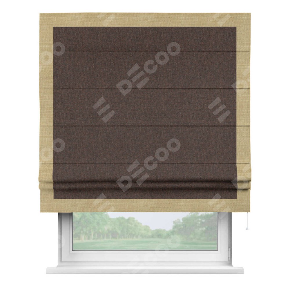 Римская штора «Кортин» с кантом Чесс, для проема, ткань лён коричневый