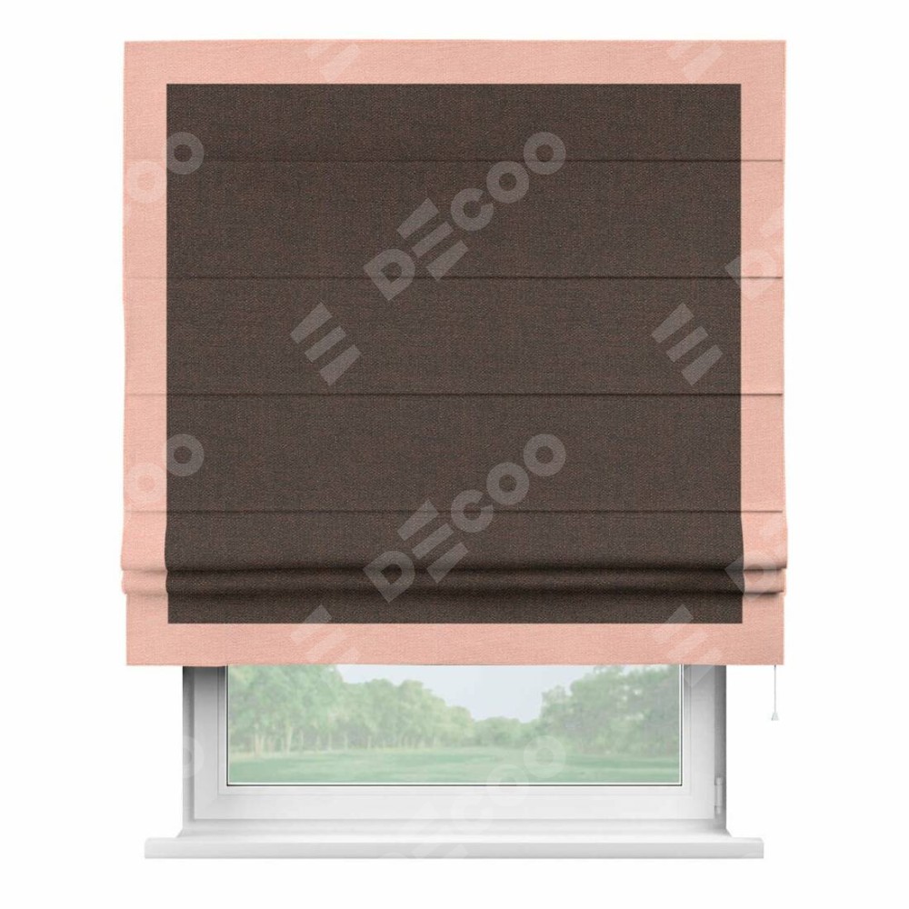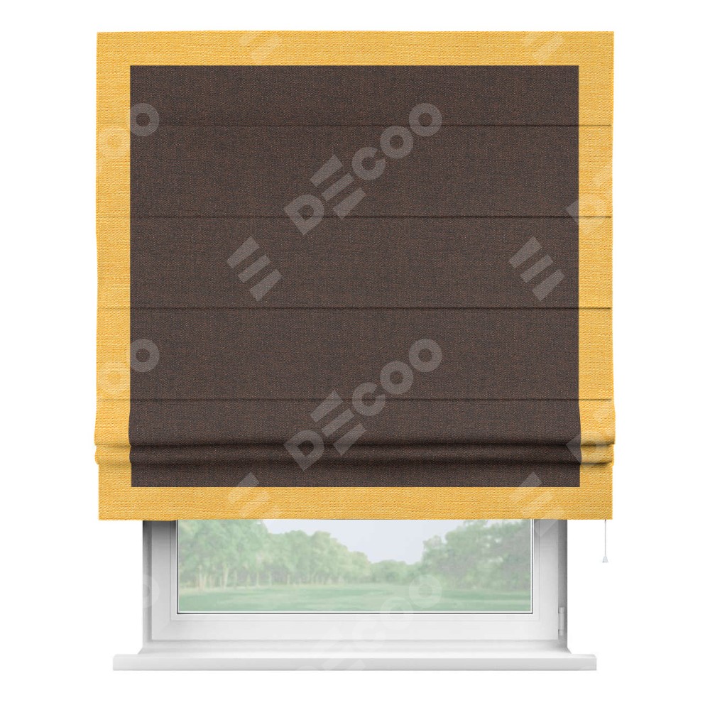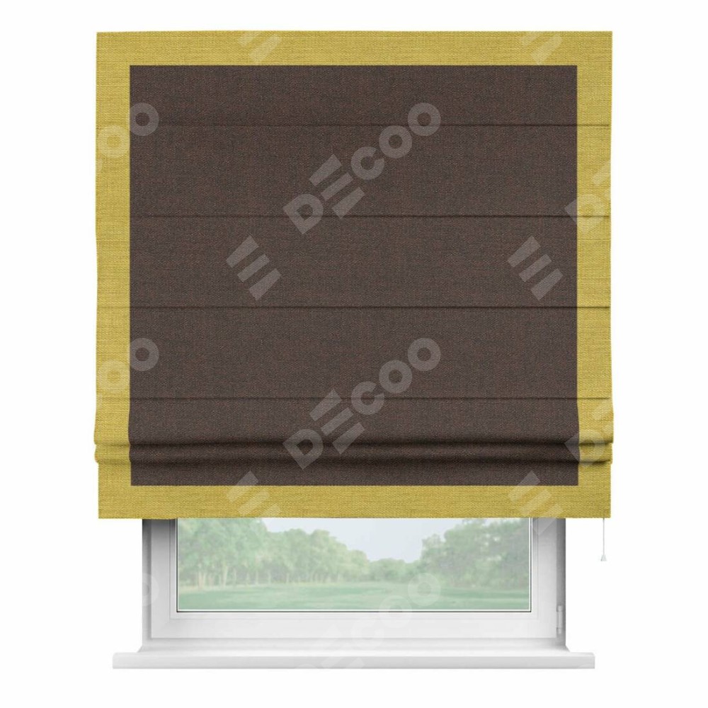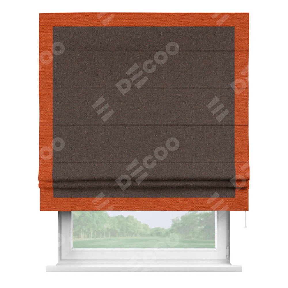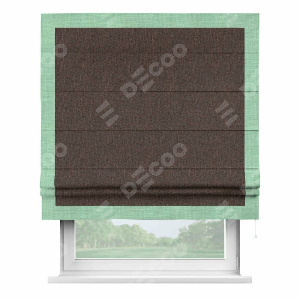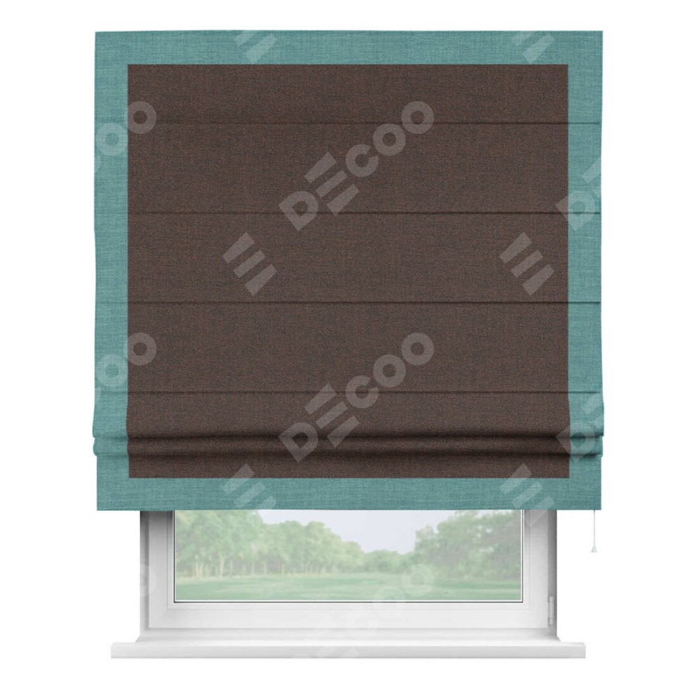 Римская штора «Кортин» с кантом Чесс, для проема, ткань лён коричневый
