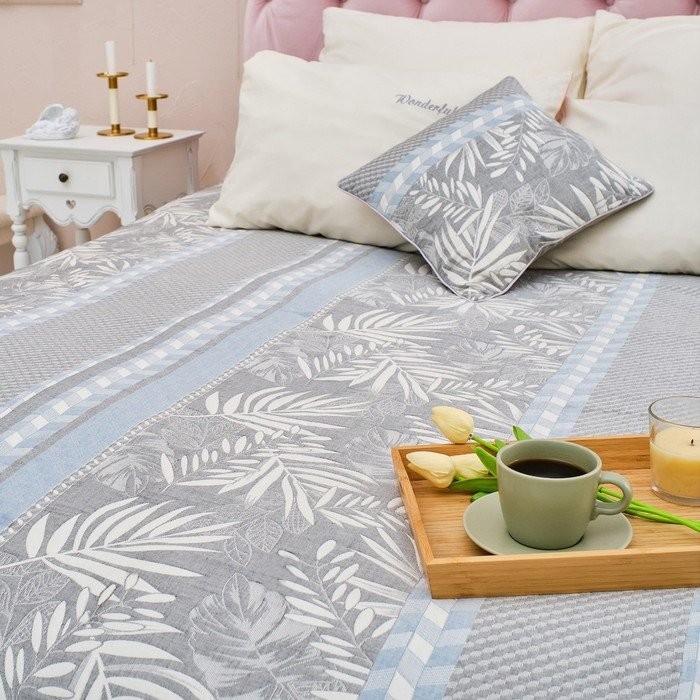 Покрывало хлопковое Этель «Листья» 150×240 см, 100% хлопок, 300гр/м2