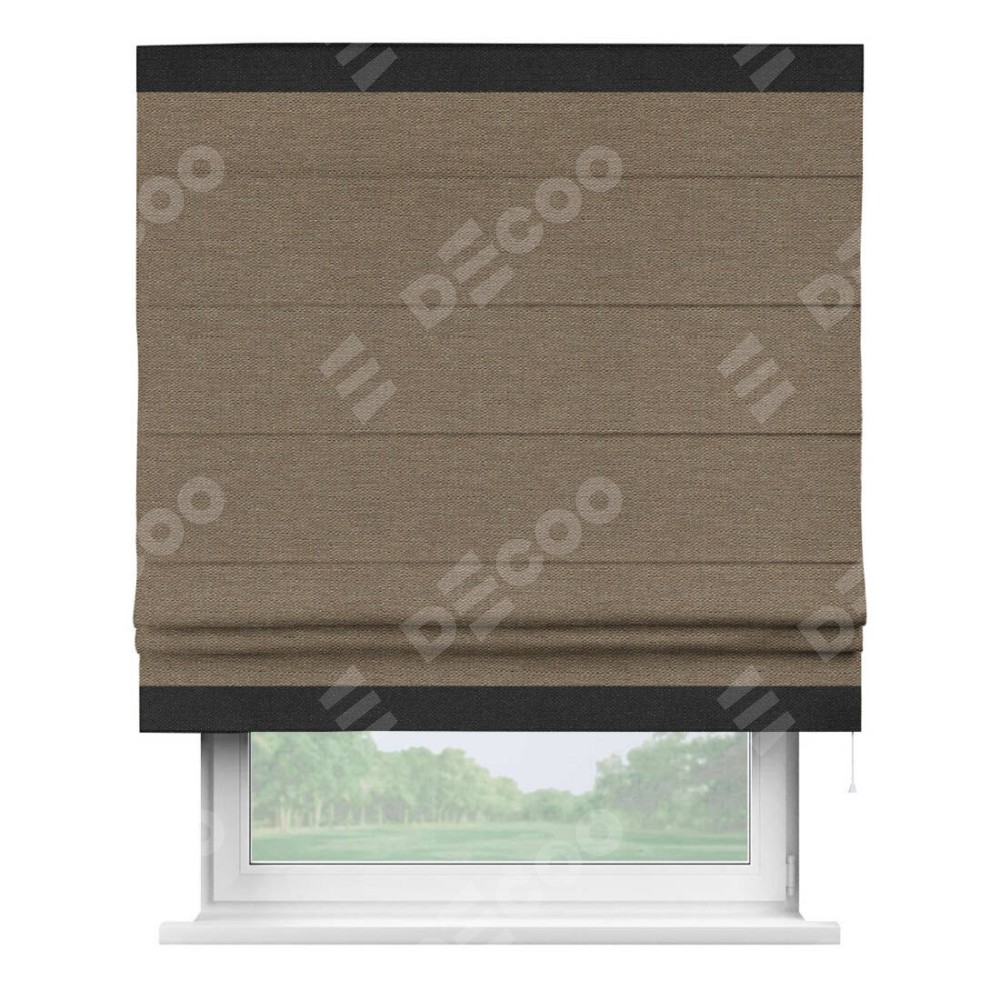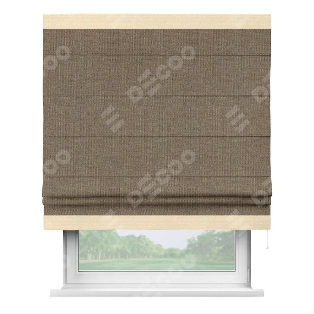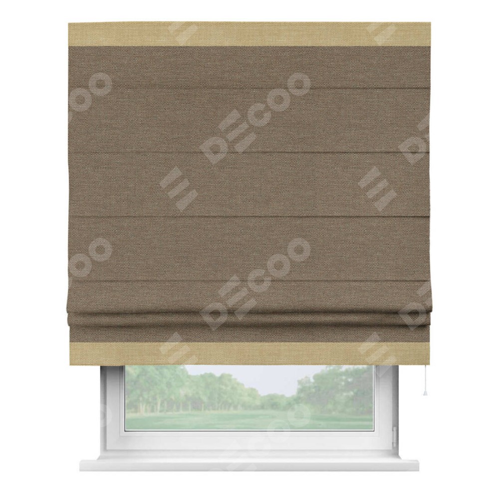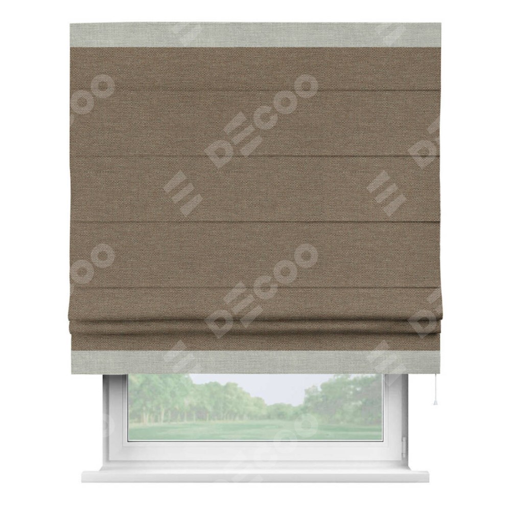 Римская штора «Кортин» с кантом Горизонт, для проема, ткань лён светло-коричневый
