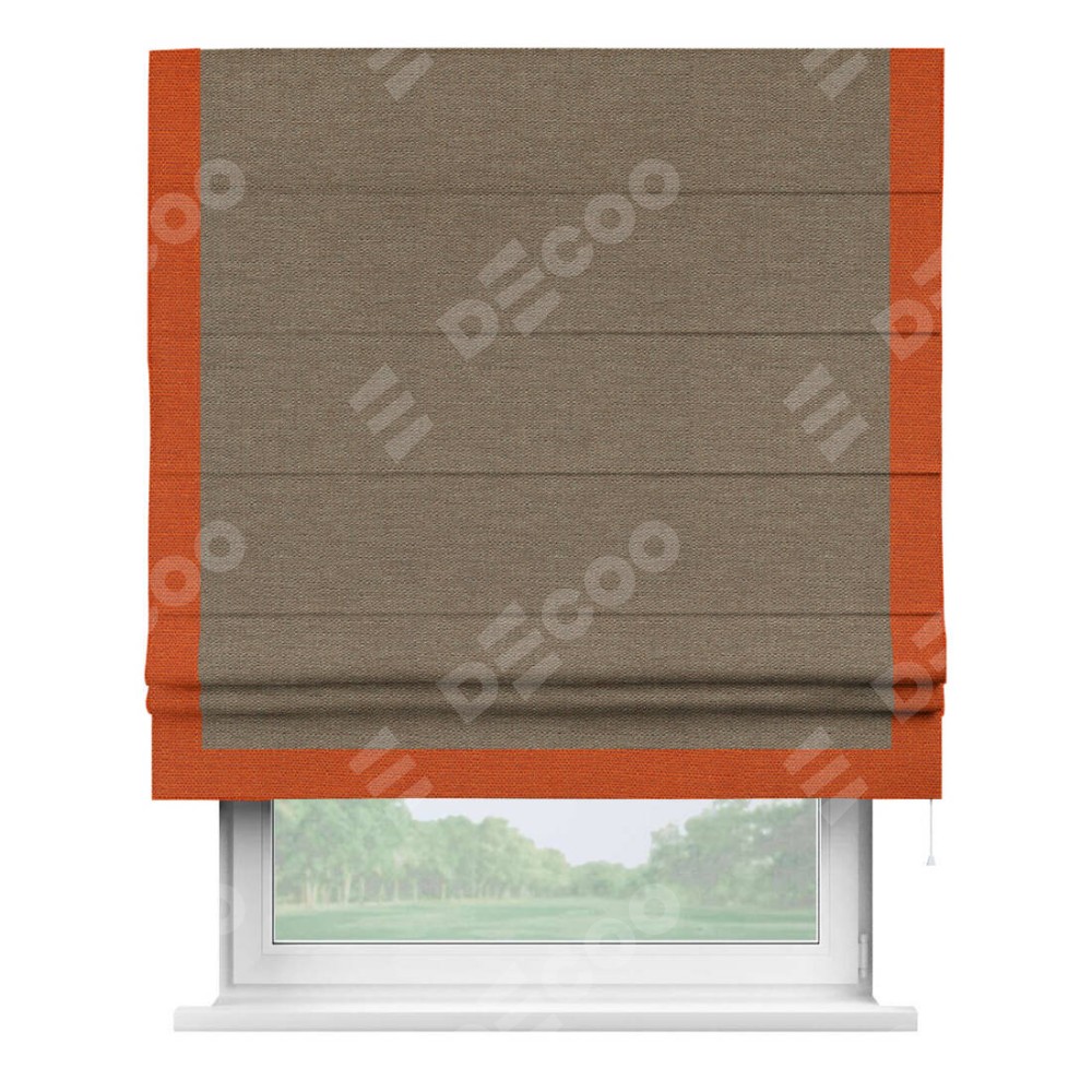 Римская штора производителя «Cortin», используется для проёма, пошита из ткани лён светло-коричневый, артикул 53434. Отделка шторы кантом «Виктория», ткань для канта используется из льна разной расцветки на выбор. Имеет универсальный механизм и подходит для монтажа: на потолок, на стену и в нишу.