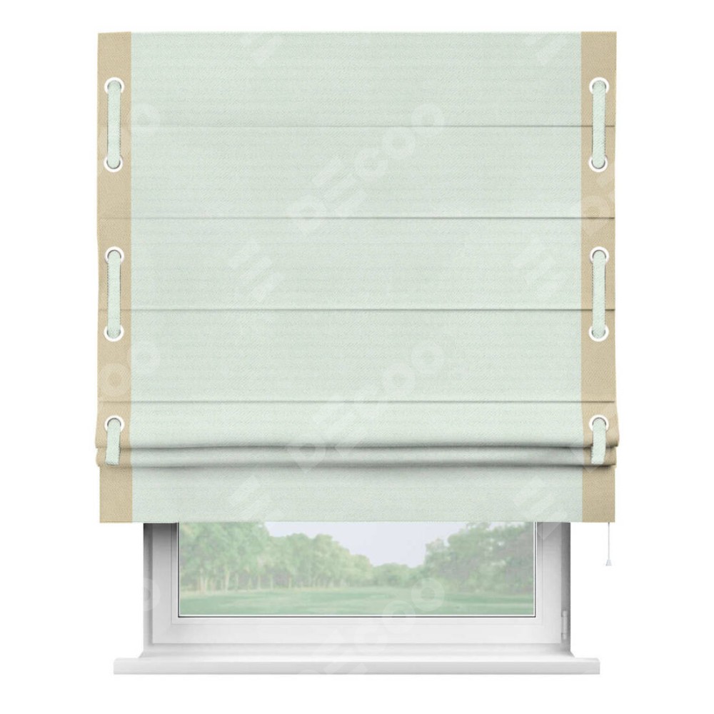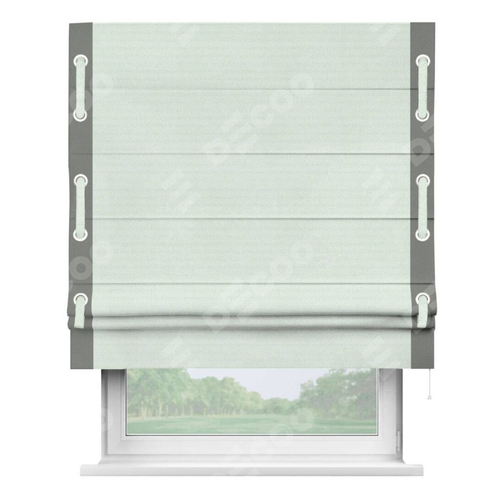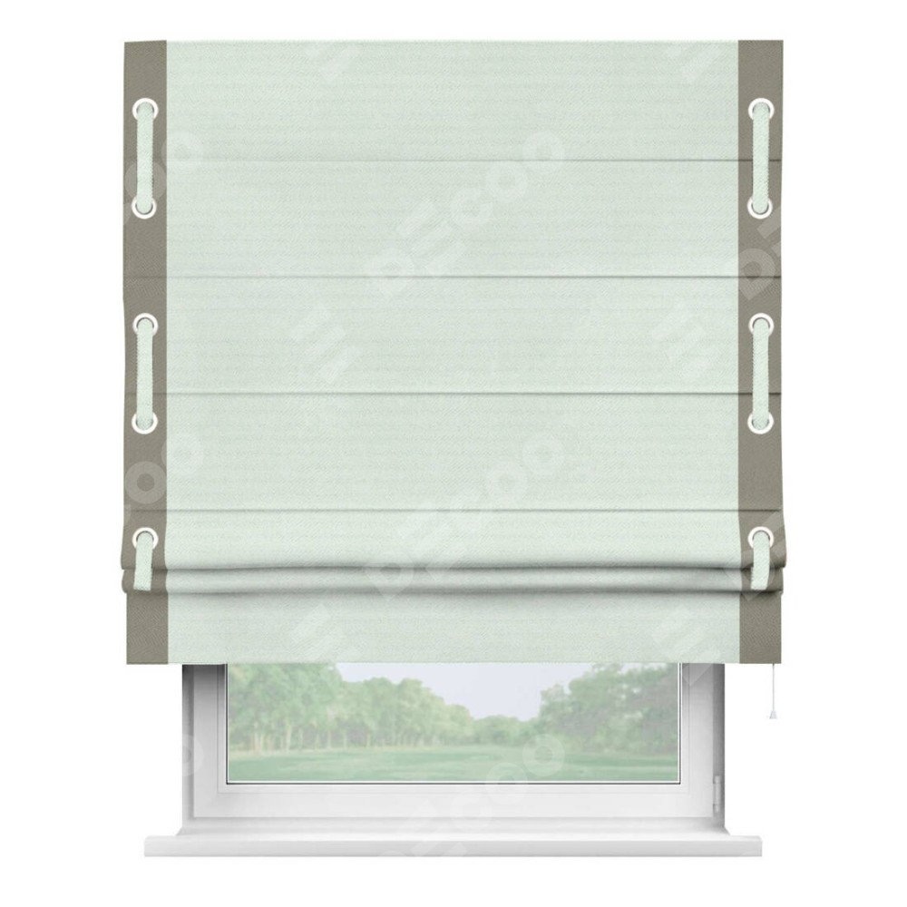 Римская штора «Кортин» с кантом Стрим Дуо (люверсы с пояском), для проема, ткань блэкаут однотонный дымчато-молочный