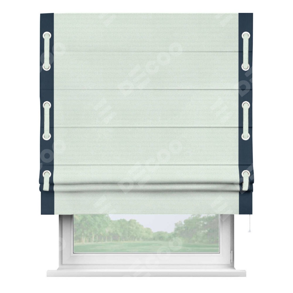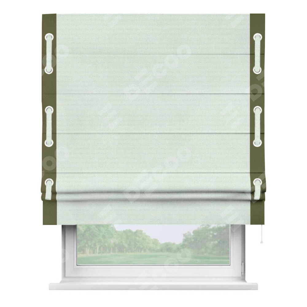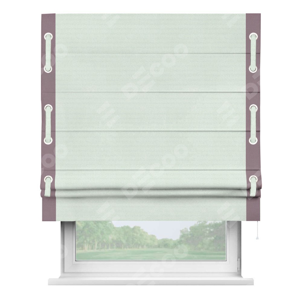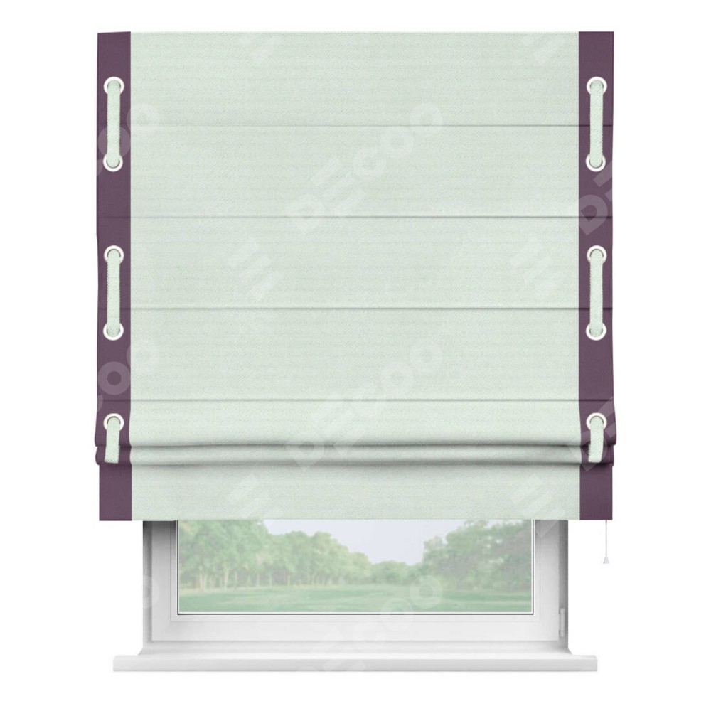 Римская штора «Кортин» с кантом Стрим Дуо (люверсы с пояском), для проема, ткань блэкаут однотонный дымчато-молочный