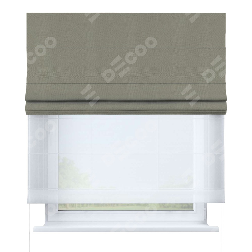 Римская штора «Кортин» день-ночь, ткань блэкаут однотонный, серо-зелёный доступна к заказу по любым размерам. Её артикул: 18109. будет зависеть от выбранных опций и будет начинаться от 4 609 руб. В интернет-магазине Decoo вы сможете заказать товар в любых размерах.