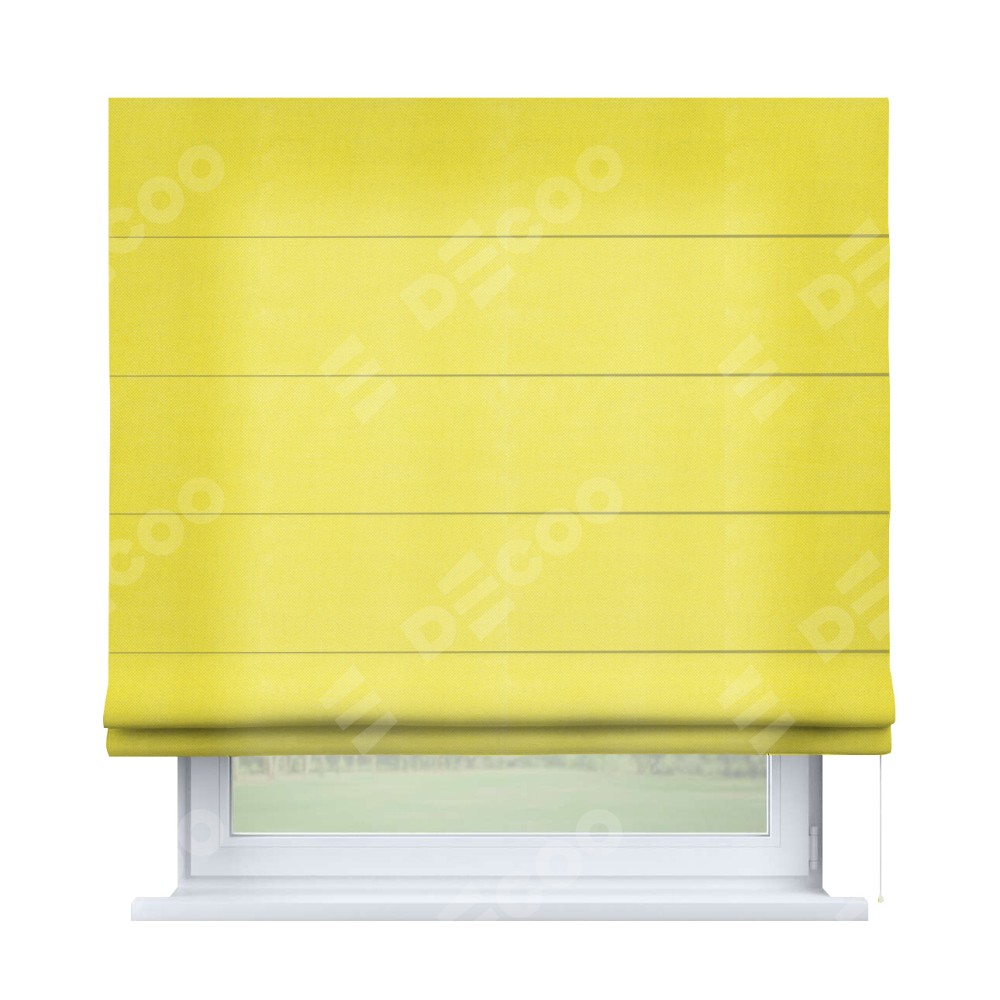 Римская штора производителя «Cortin», используется для проёма, пошита из ткани вельвет светло-желтый, артикул ткани 30997. Имеет универсальный механизм и подходит для монтажа: на потолок, на стену и в нишу.