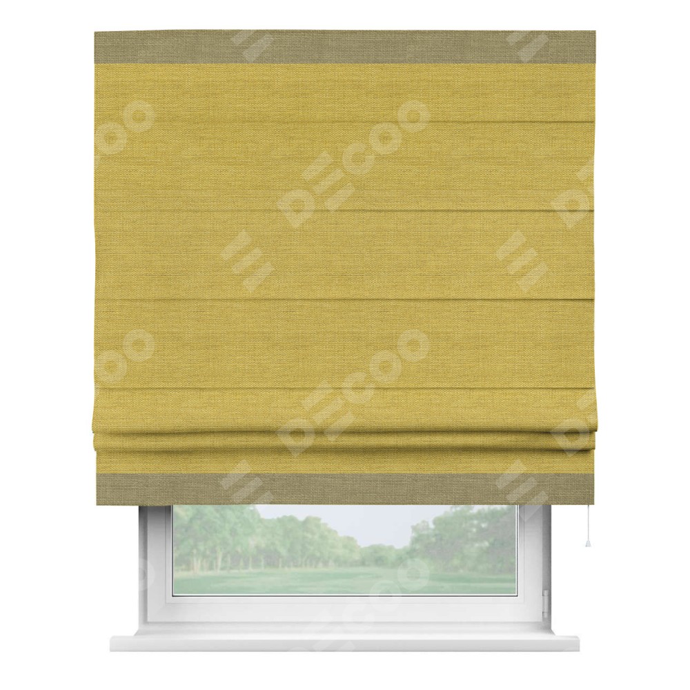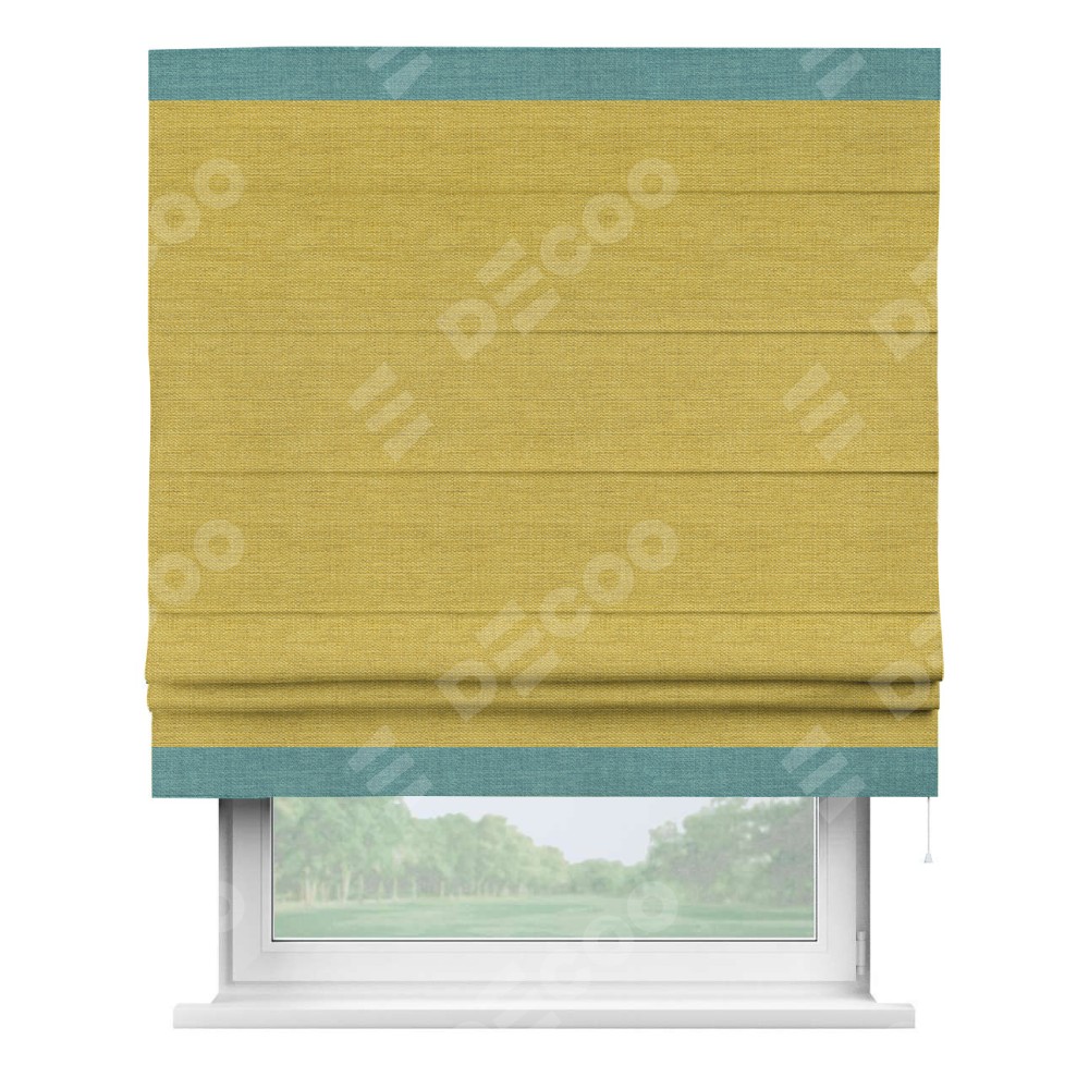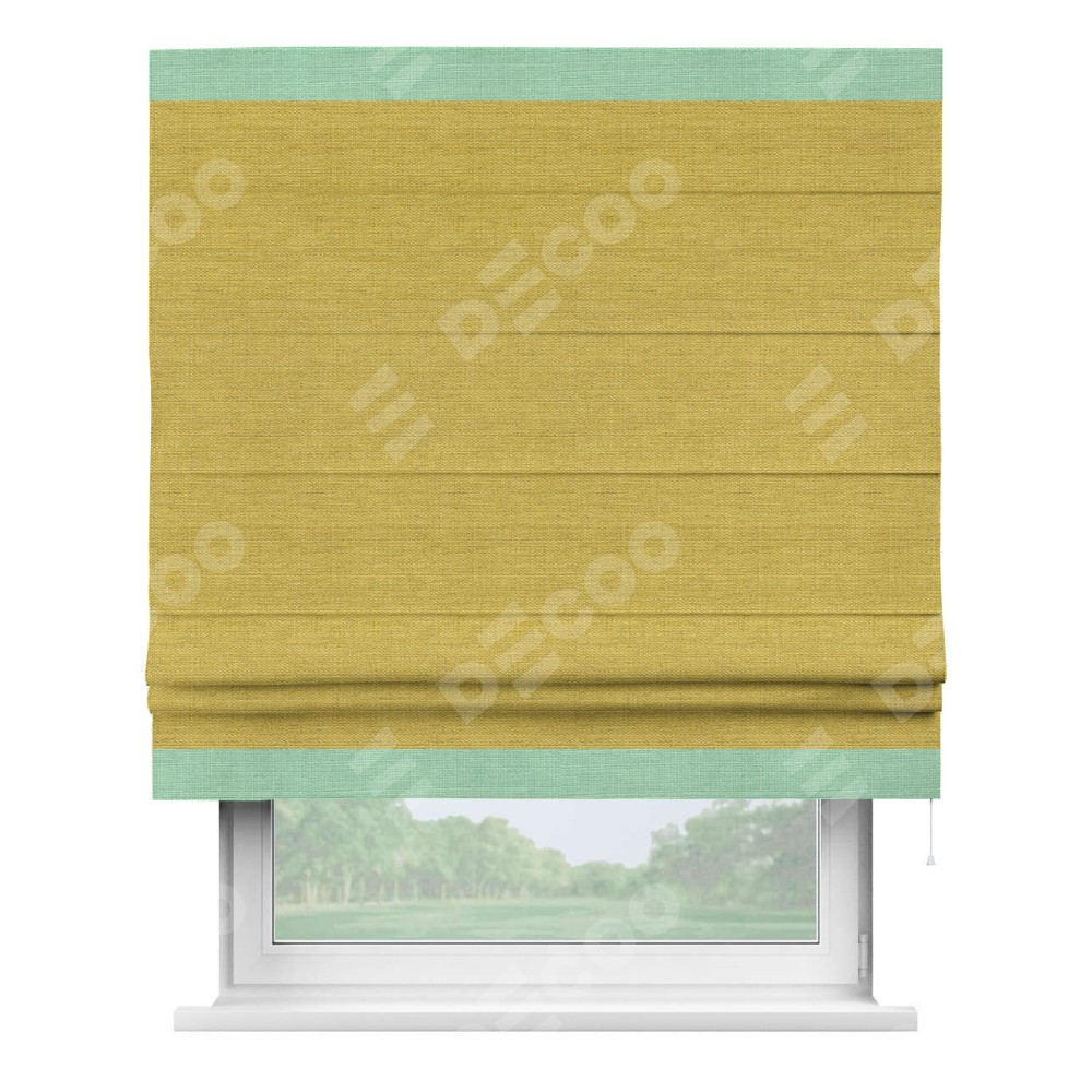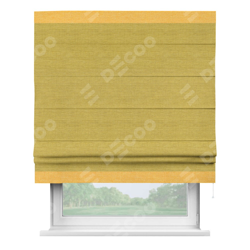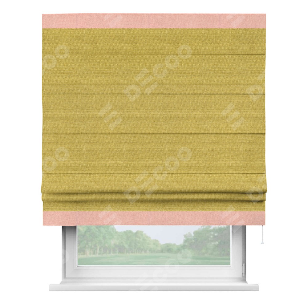 Римская штора «Кортин» с кантом Горизонт, для проема, ткань лён светло-салатовый