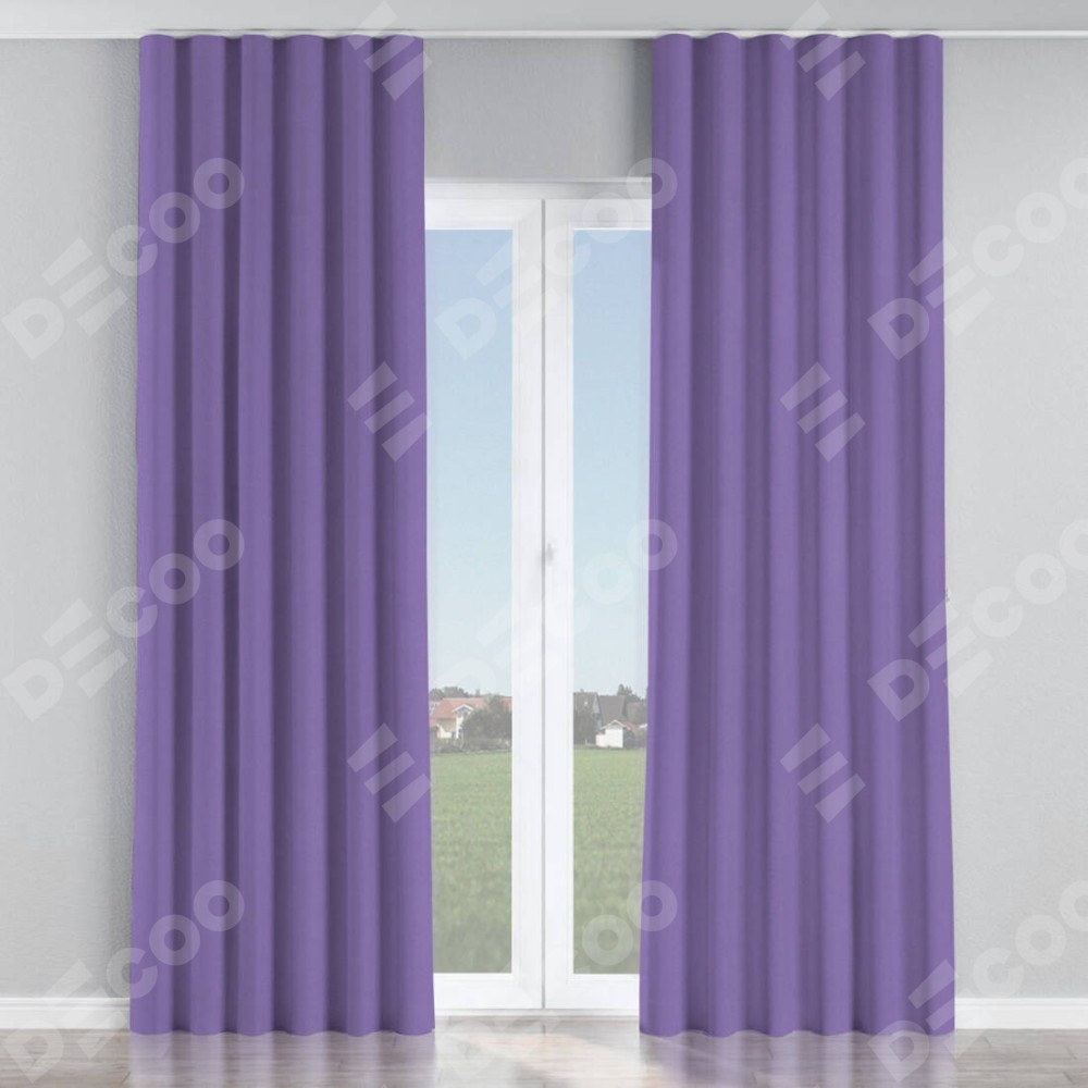 Комплект прямых штор, от производителя «Cortin», пошиты из ткани блэкаут однотонный сиреневый, артикул ткани 88305. С изнаночной стороны в верхней части штор пристрачивается шторная лента с декоративными складками «Волна». Для создания элегантных складок прямые шторы шьются по стандарту с коэффициентом 1:2 (на 100 см. ширины проёма 200 см. ширины ткани).