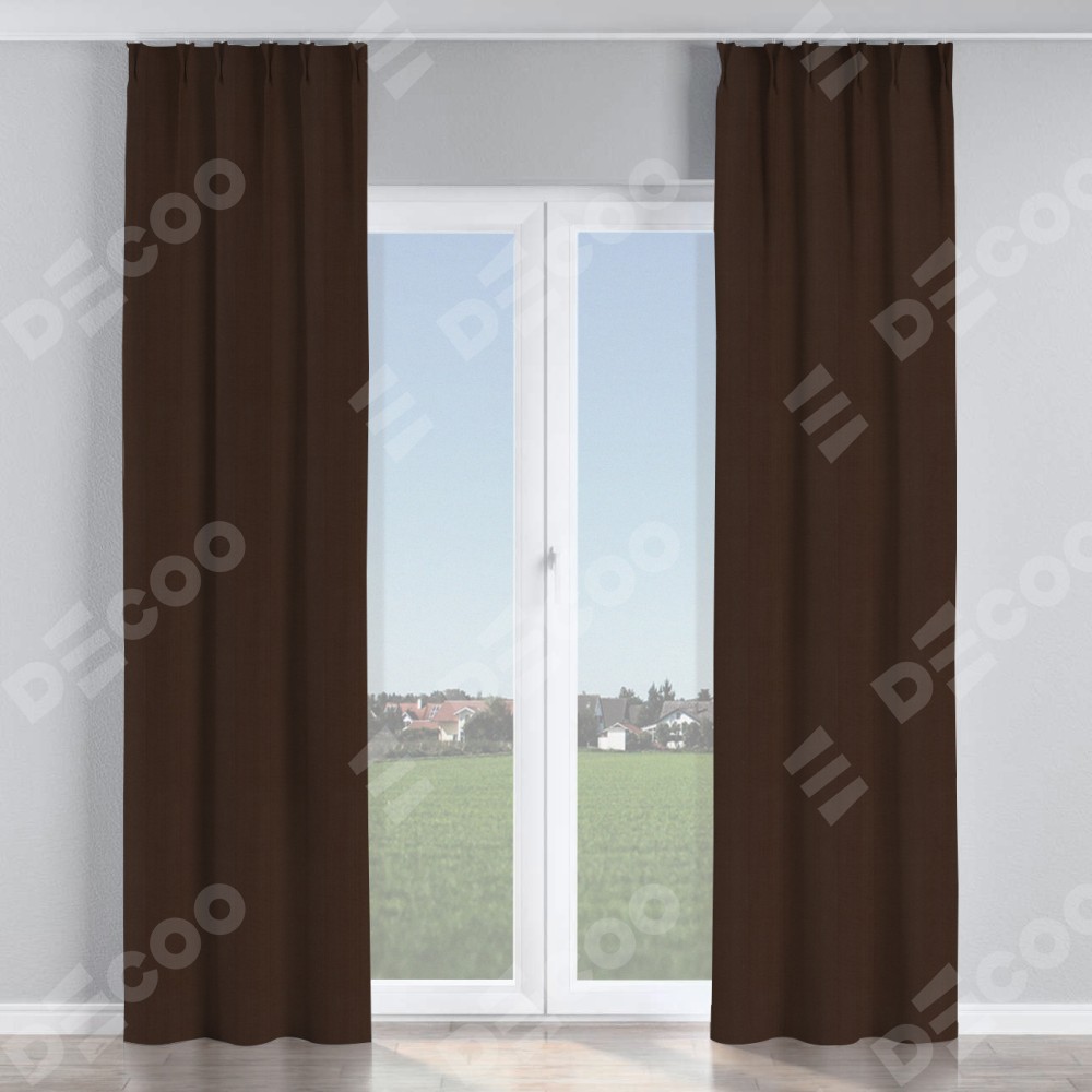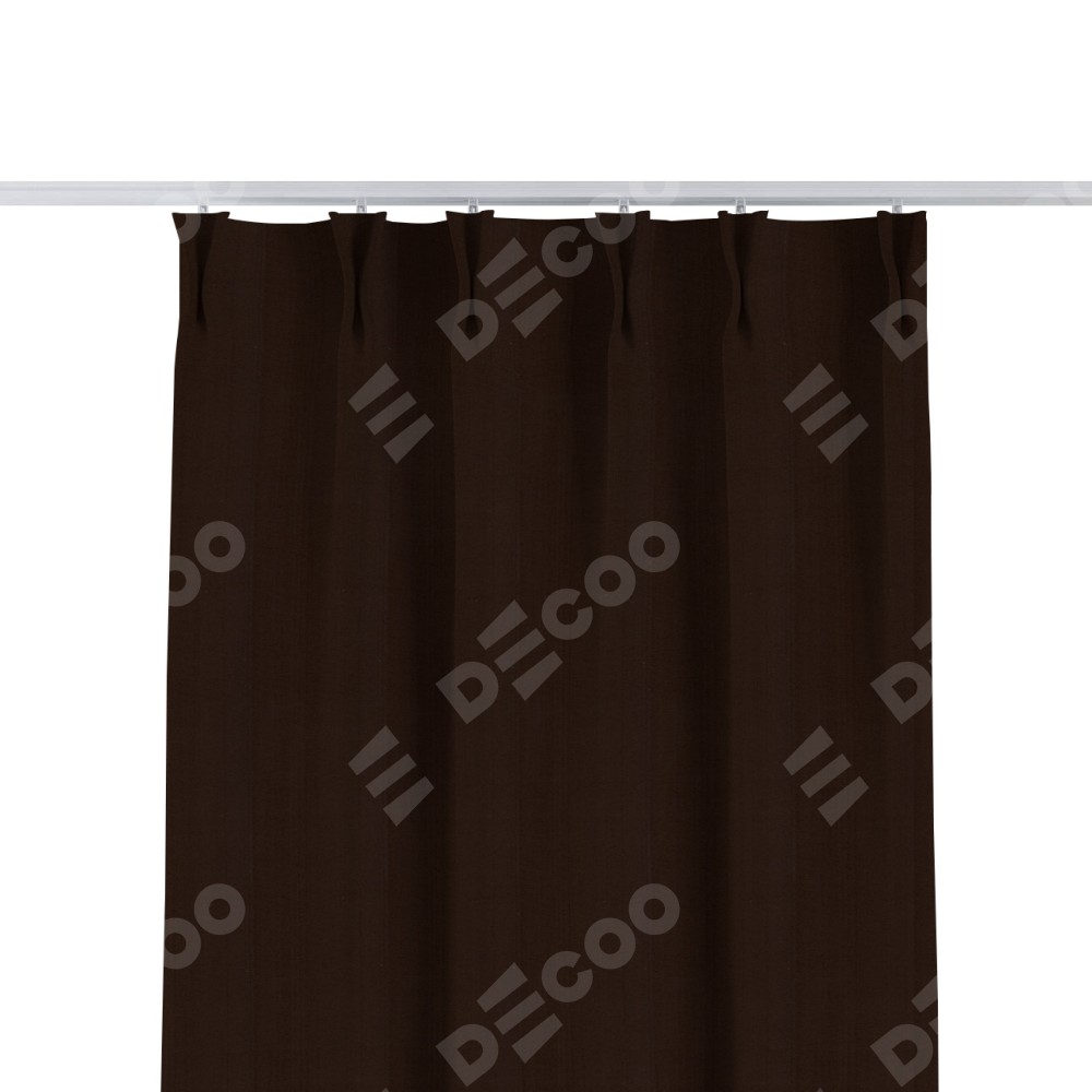 Комплект прямых штор, от производителя «Cortin», пошиты из ткани блэкаут однотонный тёмно-коричневый, артикул ткани 88287. С изнаночной стороны в верхней части штор пристрачивается шторная лента с декоративными складками «Кустик». Для создания элегантных складок прямые шторы шьются по стандарту с коэффициентом 1:2 (на 100 см. ширины проёма 200 см. ширины ткани).