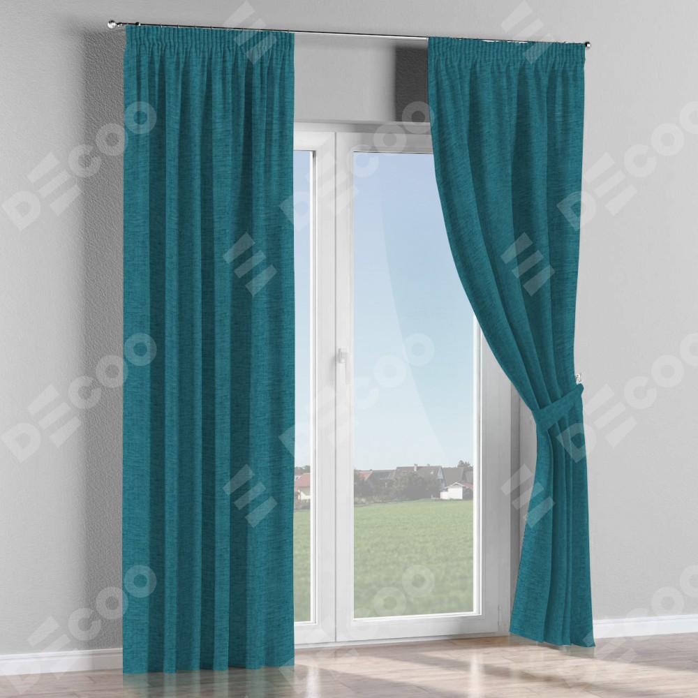 Комплект прямых штор, от производителя «Cortin», пошиты из ткани рогожка димаут синий, артикул ткани 80422. С изнаночной стороны в верхней части штор пристрачивается шторная лента с декоративными складками «Карандаш». Для создания элегантных складок прямые шторы шьются по стандарту с коэффициентом 1:2 (на 100 см. ширины проёма 200 см. ширины ткани).