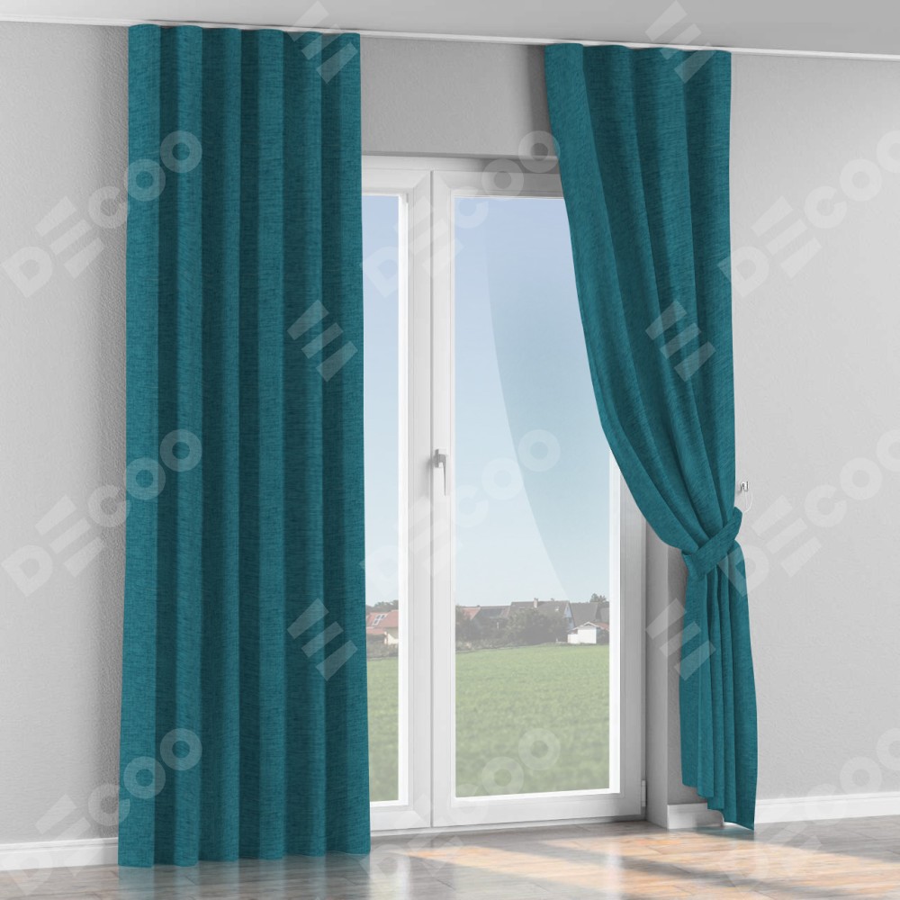 Комплект прямых штор, от производителя «Cortin», пошиты из ткани рогожка димаут синий, артикул ткани 80422. С изнаночной стороны в верхней части штор пристрачивается шторная лента с декоративными складками «Волна». Для создания элегантных складок прямые шторы шьются по стандарту с коэффициентом 1:2 (на 100 см. ширины проёма 200 см. ширины ткани).