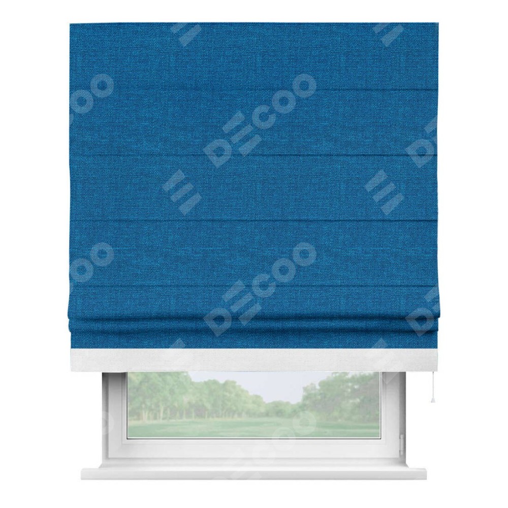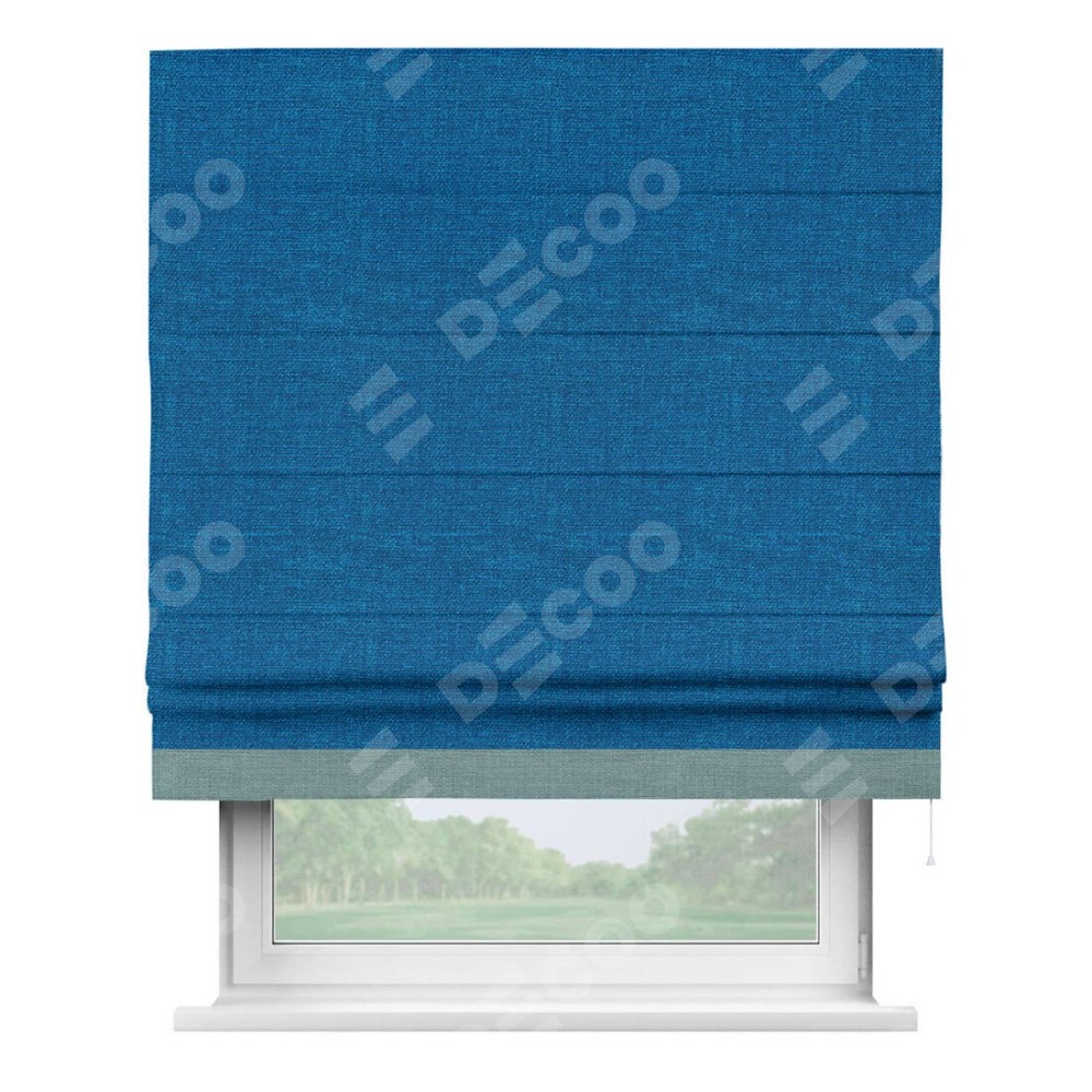 Римская штора «Кортин» с кантом Джестер, для проема, ткань лён синий