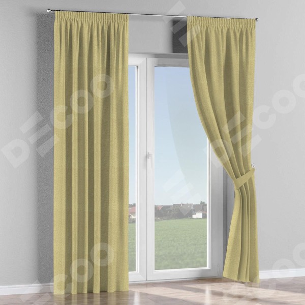 Комплект прямых штор, от производителя «Cortin», пошиты из ткани лён димаут песочный, артикул ткани 16239. С изнаночной стороны в верхней части штор пристрачивается шторная лента с декоративными складками «Карандаш». Для создания элегантных складок прямые шторы шьются по стандарту с коэффициентом 1:2 (на 100 см. ширины проёма 200 см. ширины ткани).