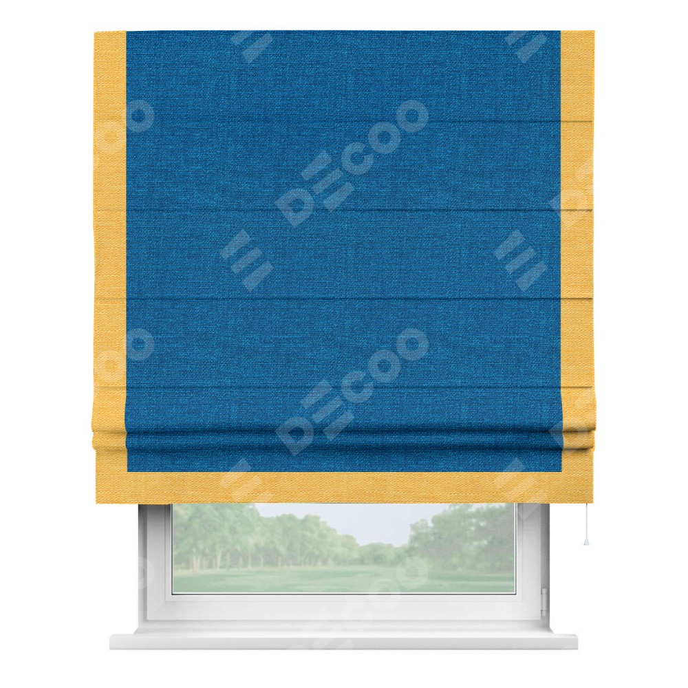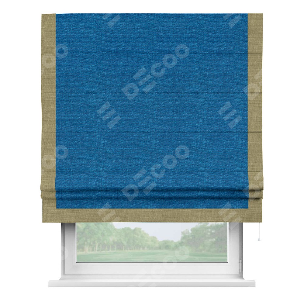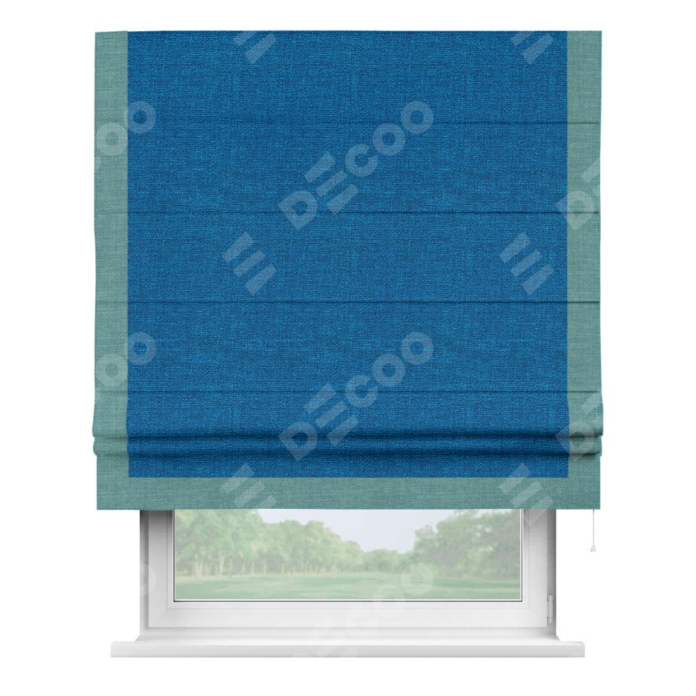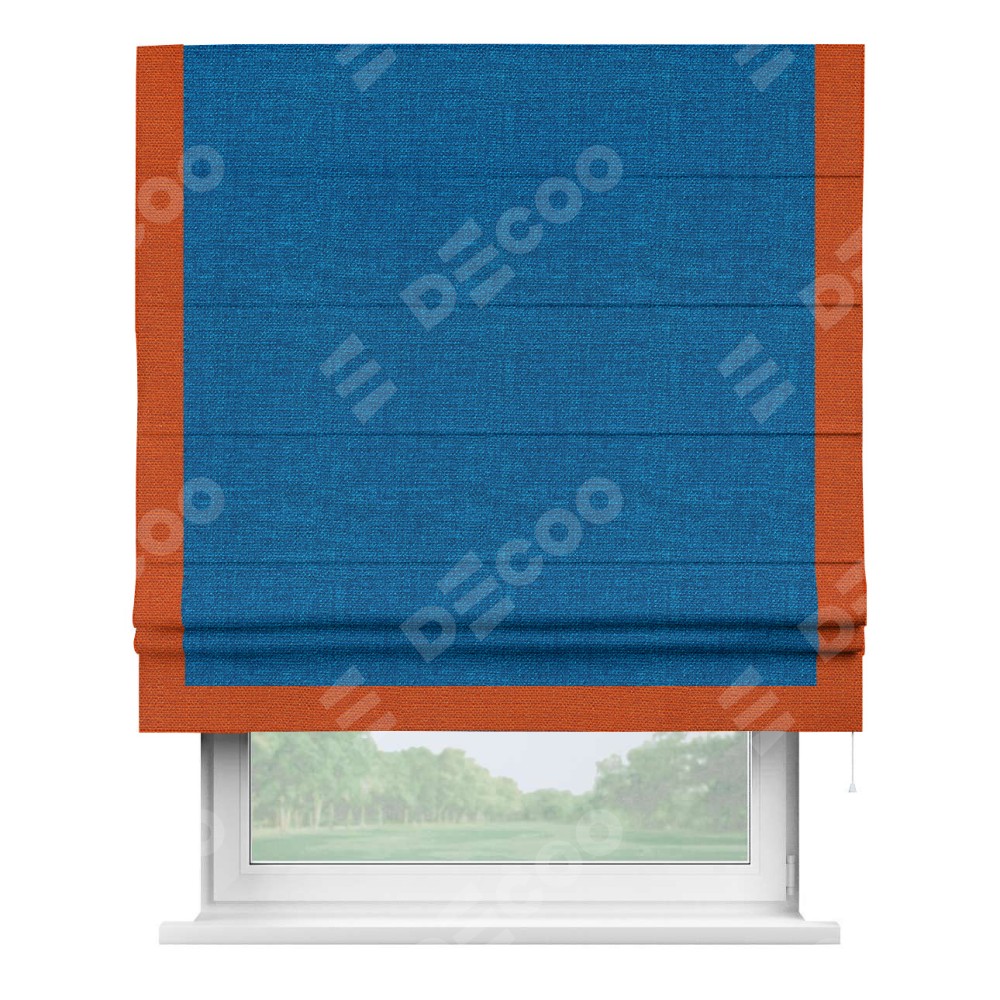 Римская штора «Кортин» с кантом Виктория, для проема, ткань лён синий