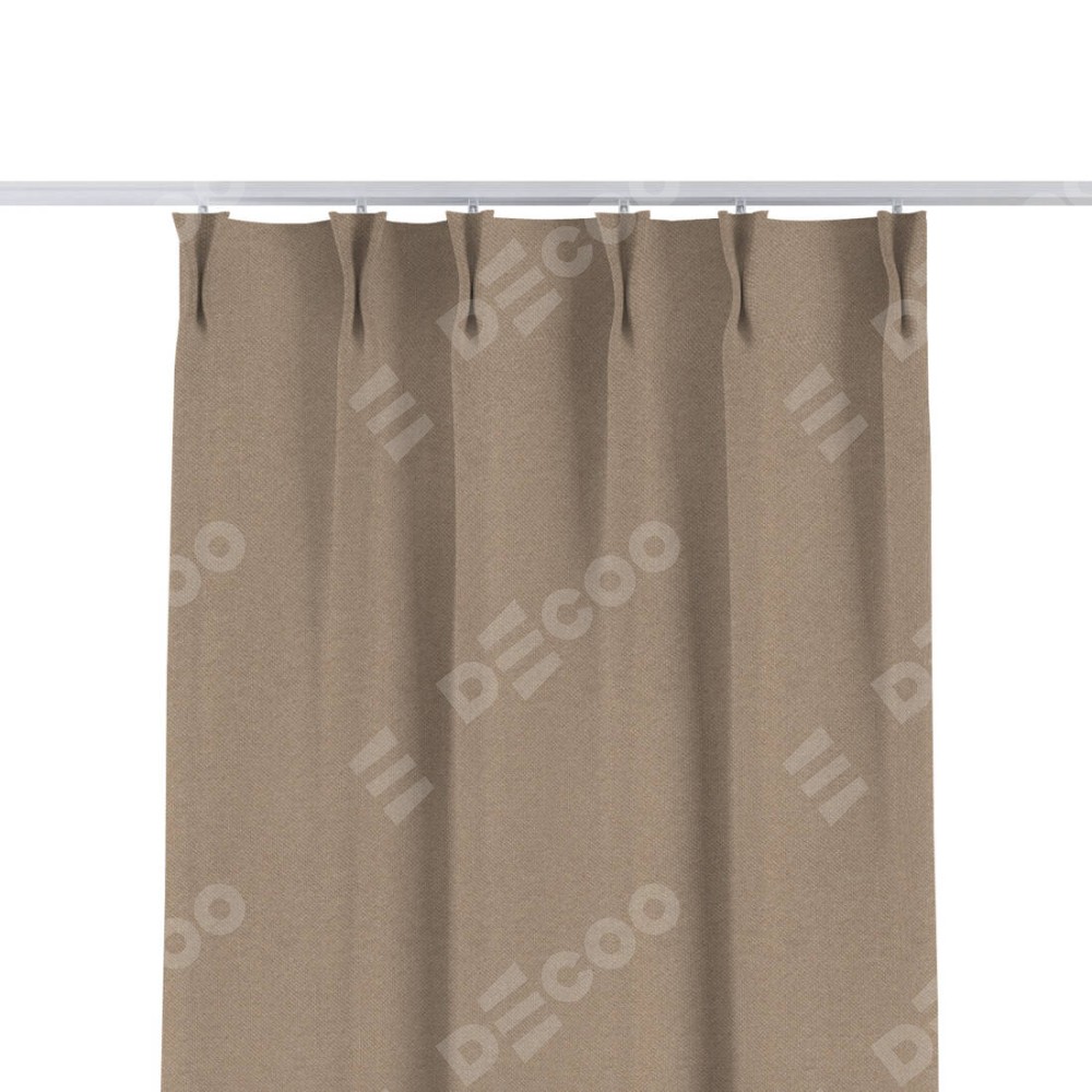 Комплект прямых штор, от производителя «Cortin», пошиты из ткани лён димаут светло-бежевый, артикул ткани 00002. С изнаночной стороны в верхней части штор пристрачивается шторная лента с декоративными складками «Кустик». Для создания элегантных складок прямые шторы шьются по стандарту с коэффициентом 1:2 (на 100 см. ширины проёма 200 см. ширины ткани).