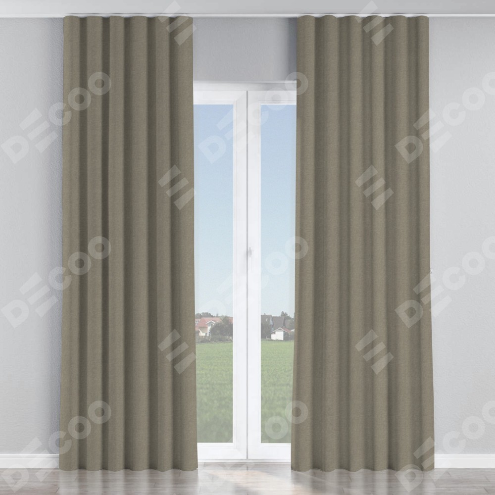 Комплект прямых штор, от производителя «Cortin», пошиты из ткани лён димаут серо-зелёный, артикул ткани 00003. С изнаночной стороны в верхней части штор пристрачивается шторная лента с декоративными складками «Волна». Для создания элегантных складок прямые шторы шьются по стандарту с коэффициентом 1:2 (на 100 см. ширины проёма 200 см. ширины ткани).