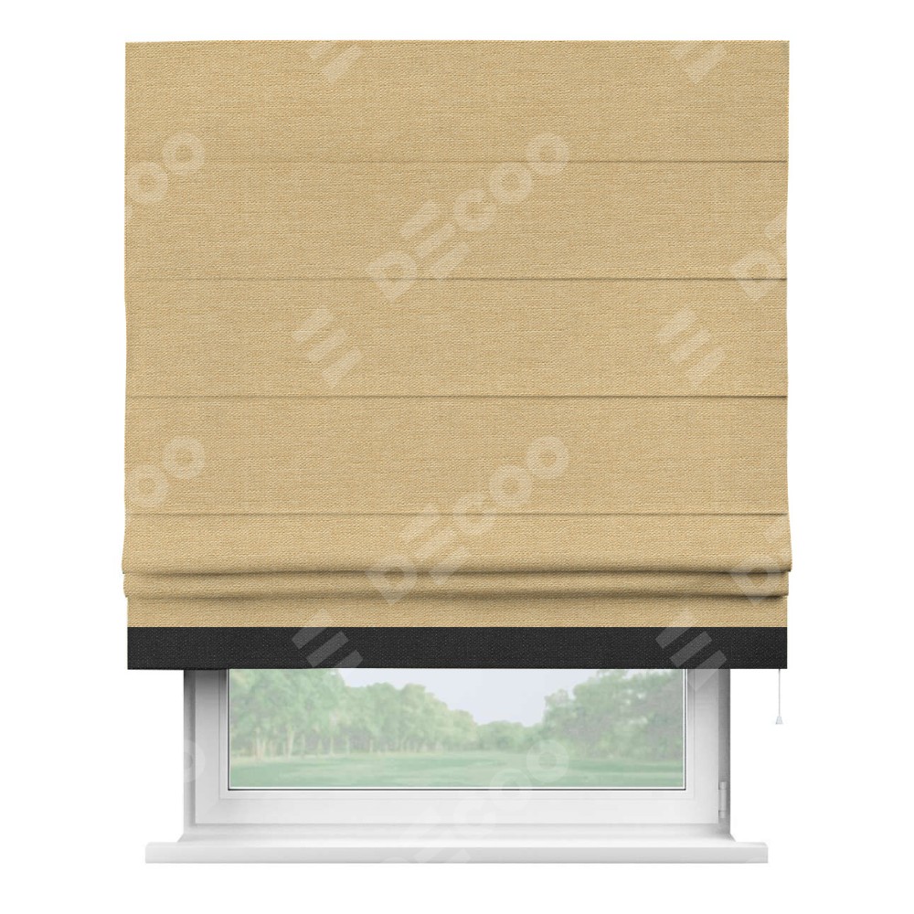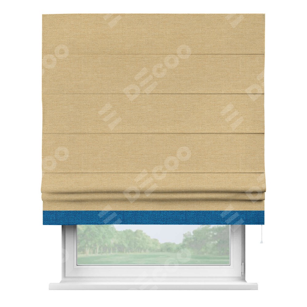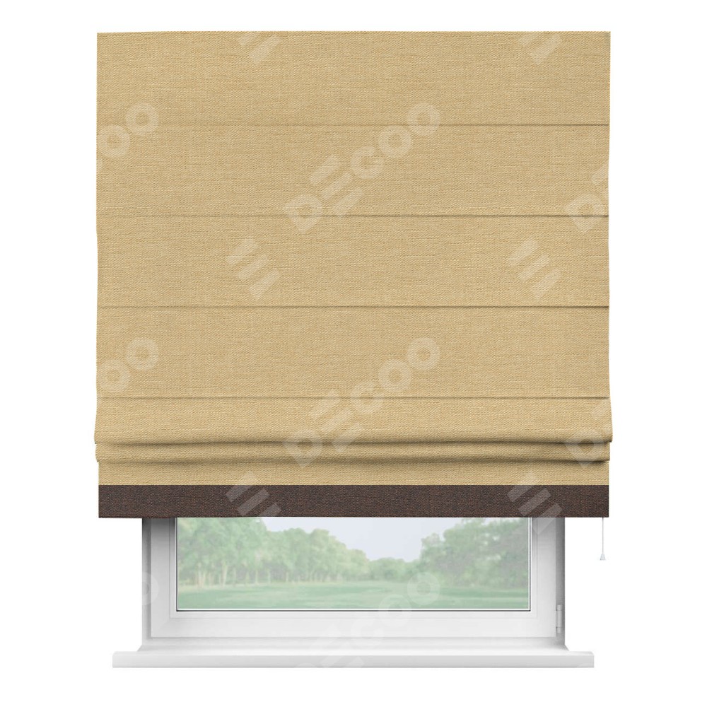 Римская штора производителя «Cortin», используется для проёма, пошита из ткани лён темно-бежевый, артикул 53433. Отделка шторы кантом «Джестер», ткань для канта используется из льна разной расцветки на выбор. Имеет универсальный механизм и подходит для монтажа: на потолок, на стену и в нишу.