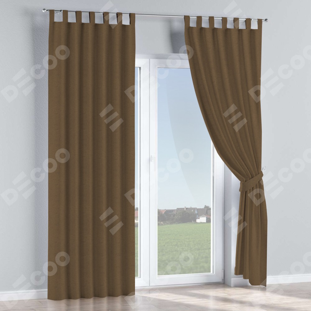 Комплект прямых штор, от производителя «Cortin», пошиты из ткани лён димаут тёмно-коричневый, артикул ткани 83030. Данная модель пошита на петлях, комплектуется на выбор круглым карнизом и подходит для монтажа на стену или потолок. Прямые шторы на петлях шьются по стандарту с коэффициентом 1/2 (на 100 см. ширины проёма 200 см. ширины ткани), отличительным преимуществом данной модели является простой способ монтажа. Достаточно повесить ее на трубу и штора готова!